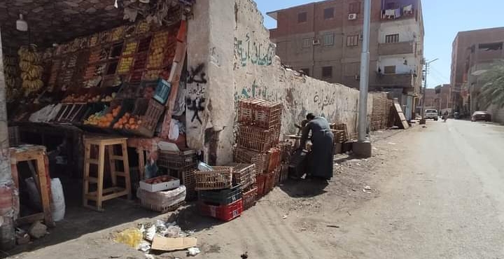 حملة مكبرة لرفع إشغالات المحال والمقاهي والباعة الجائلين بشوارع الخارجة (صور)