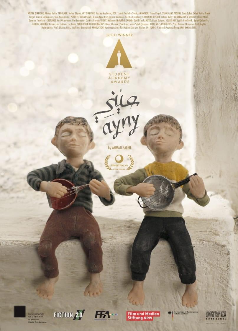 و تتضمن الأمسية عرض مجموعة من الأفلام الفلسطينية القصيرة التي نجحت في حصد الجوائز، والإشادات الدولية، وتعريف العالم بقضيتنا منها: فيلم "عينى" للمخرج أحمد صالح، وهو فيلم تحريك يتناول حياة بعض الصبية، يجمع بينهم شغفهم بالموسيقى وسرورهم بالألحان.