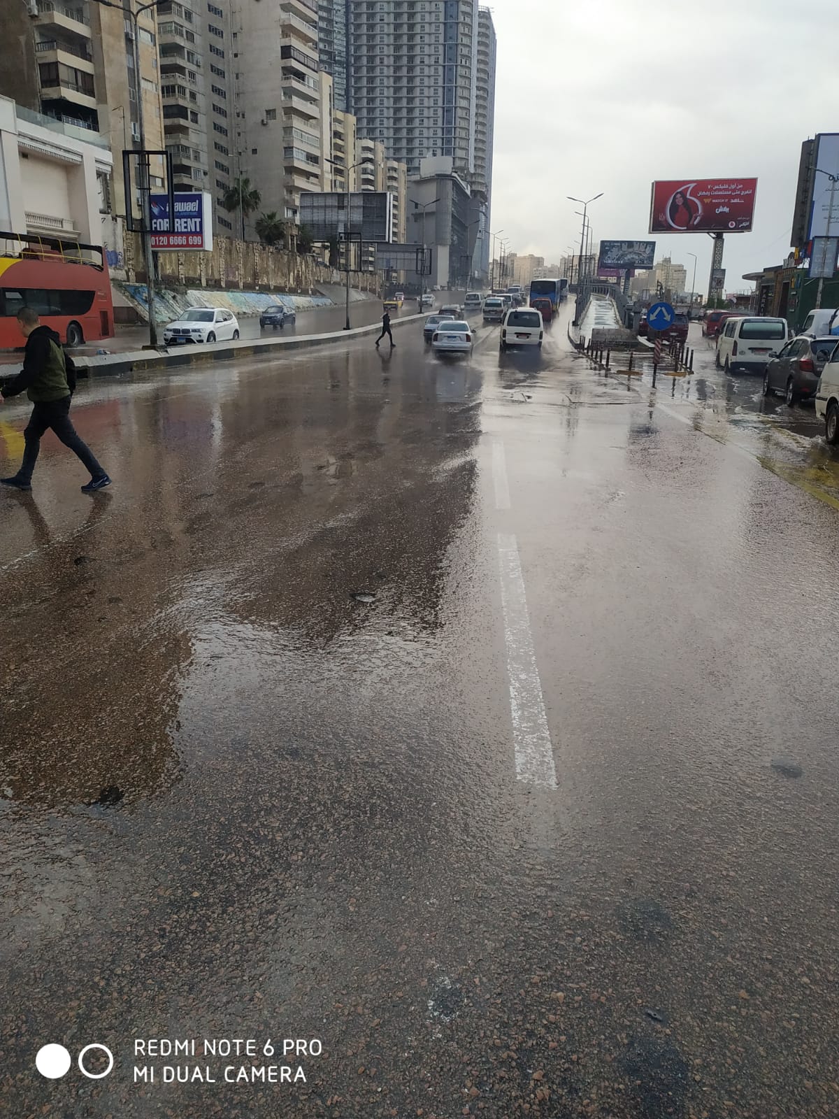 شهدت محافظة الإسكندرية اليوم سقوط أمطار غزيرة على مناطق شرق ووسط وغرب المحافظة وسط موجة من الصقيع والغيوم.
