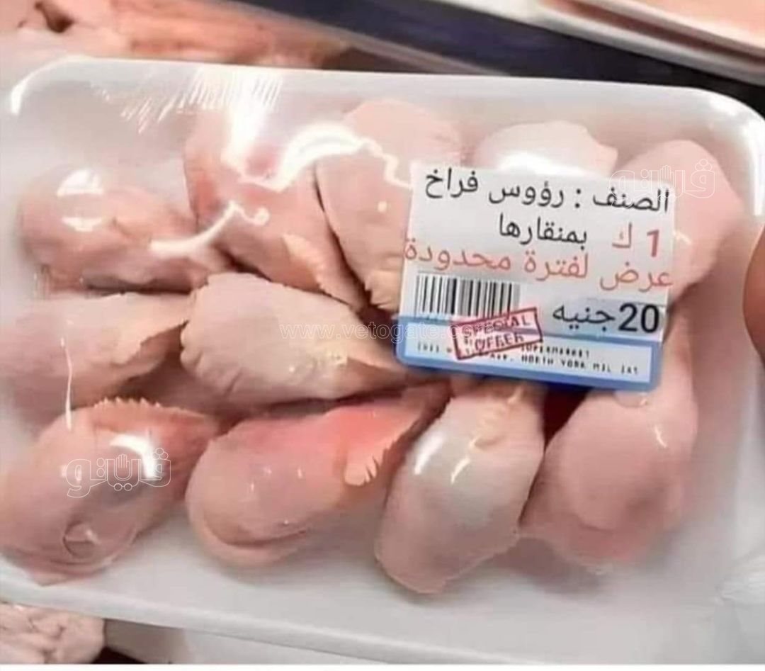 أسعار أجنحة الدواجن وبيع رؤوس الفراخ في الأسواق، أثار تداول عدد من رواد مواقع التواصل الاجتماعى لصورة رؤوس دجاج مغلفة مكتوب عليها «رؤوس فراخ بمنقارها عرض لفترة محدودة بسعر 20 جنيهًا لكيلو» الجدل مع ارتفاع أسعار الدواجن بالأسواق، ليعلق البعض على الصورة المتداولة «حتى رؤوس الفراخ اللي كان الفرارجية بيسبوها للقطط بقى ليها سعر».