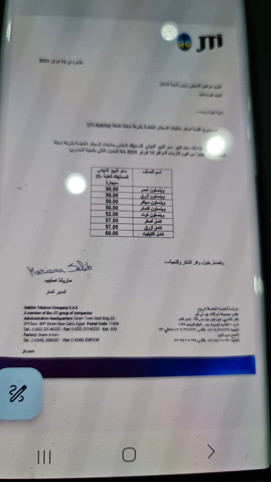 وجاءت قائمة أسعار منتجات فيليب موريس مصر كالتالي: