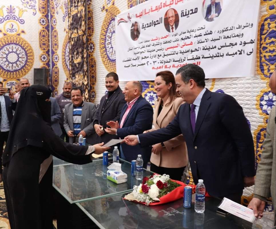 قامت هند عبدالحليم نائب محافظ الجيزة لشئون تنمية المجتمع وخدمة البيئة بتسليم 45 مواطنا من أهالى مدينة الحوامدية شهادات محو الأمية، بعد اجتيازهم امتحانات الدورة المنعقدة بديوان المدينة، وذلك بحضور النائب عصام هلال عفيفي عضو مجلس النواب.