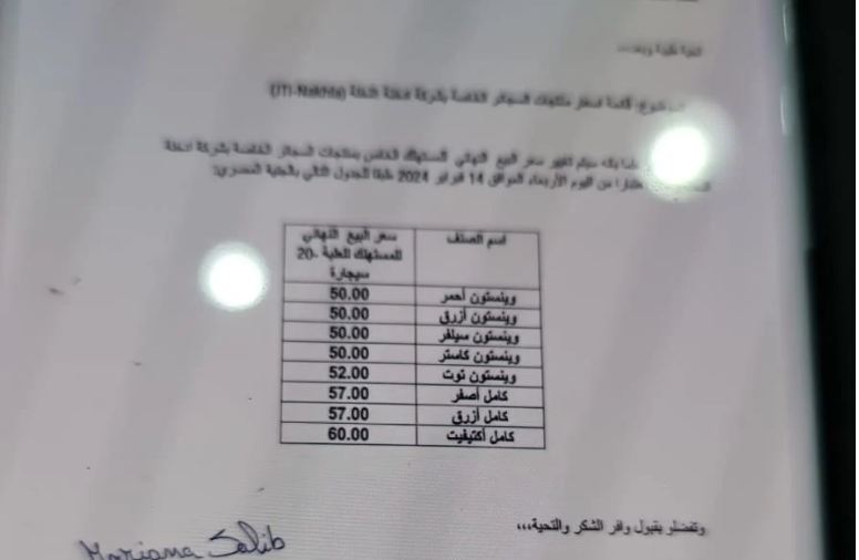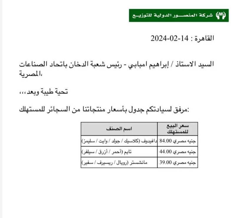 أعلنت شركة المنصور الدولية للتوزيع عن أسعار منتجاتها من السجائر للمستهلك.