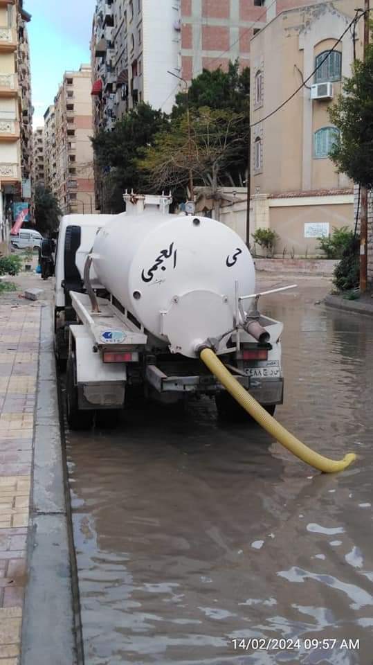 رئيس حي العجمي بالإسكندرية يتابع رفع تجمعات مياه الأمطار (صور)