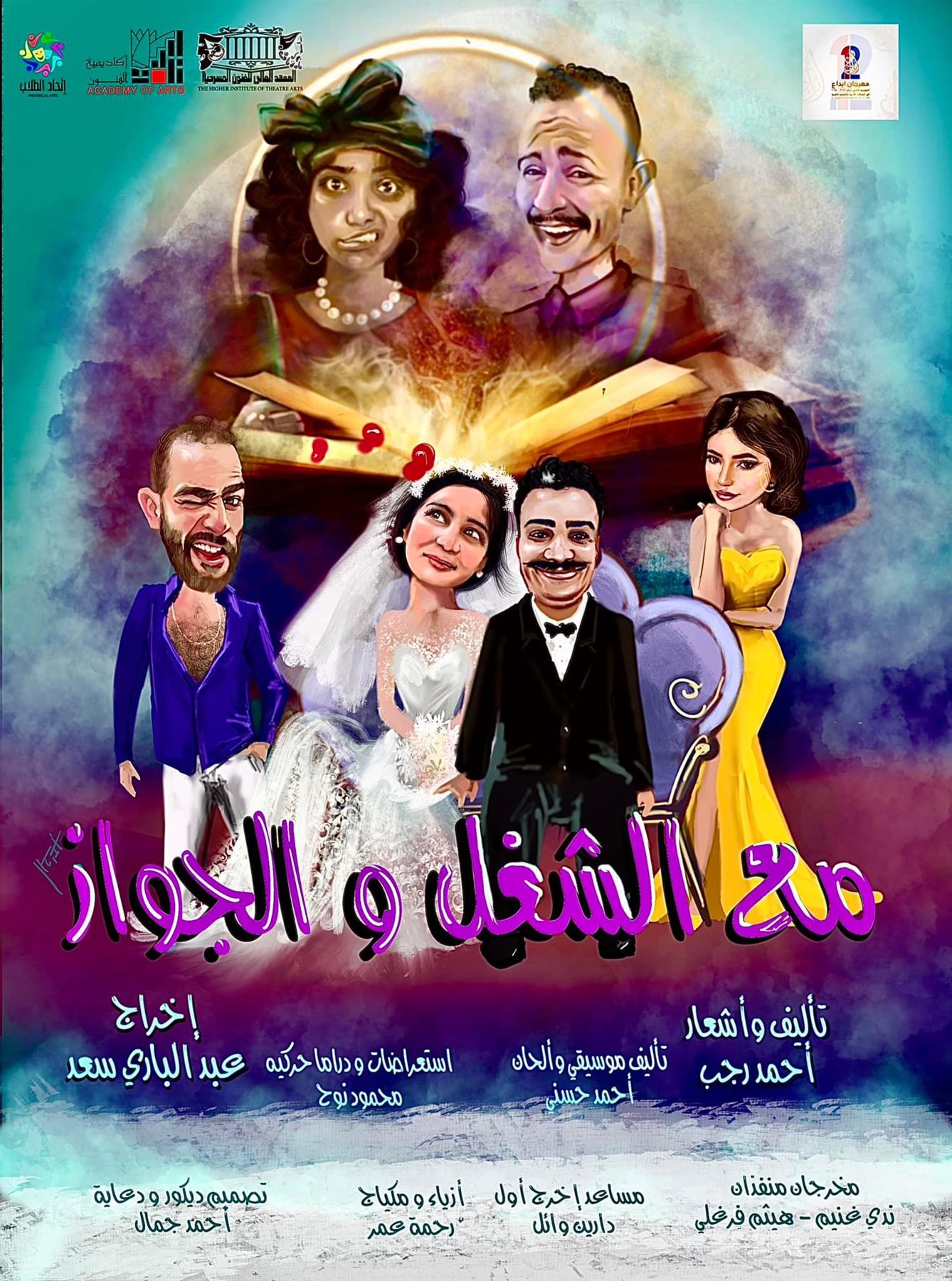 يقدم فريق العرض المسرحي "مع الشغل والجواز" من إنتاج المعهد العالي للفنون المسرحية بأكاديمية الفنون، في تمام 1.30 مساء غدا الجمعة، مشاركته ضمن فعاليات مهرجان إبداع للمسرح الغنائي والاستعراضي، وذلك على مسرح وزارة الشباب والرياضة بالمهندسين.