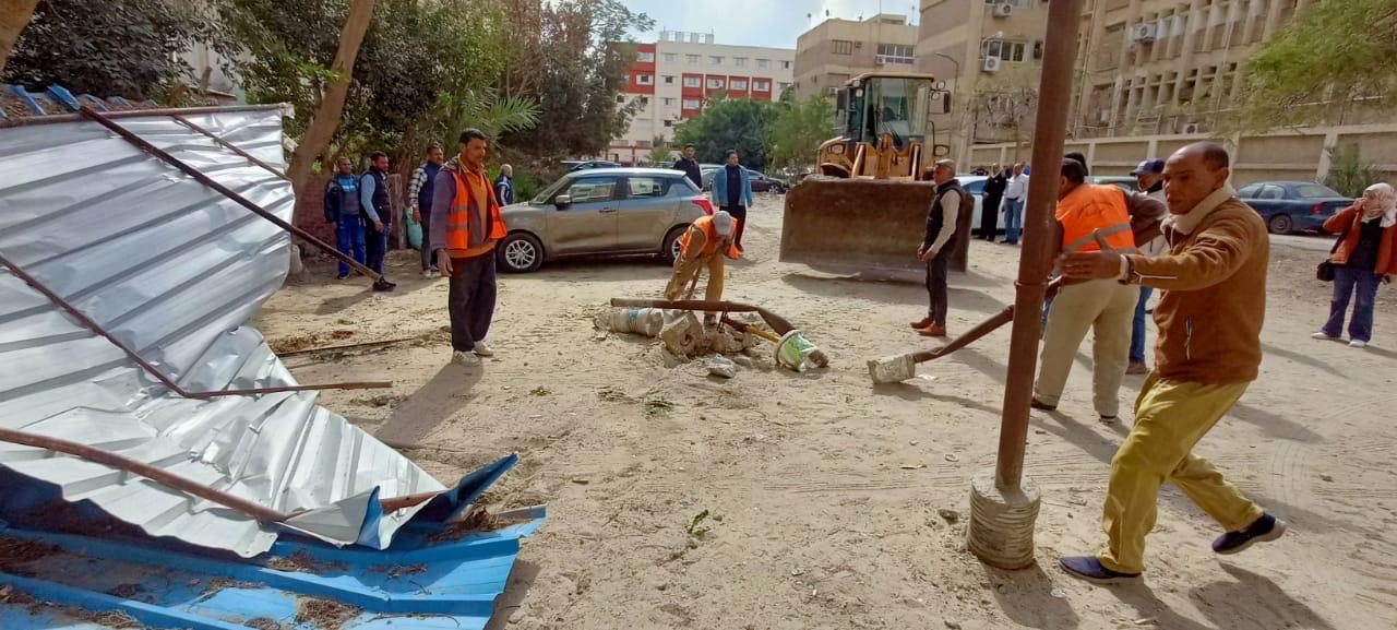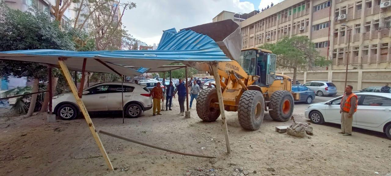 وأسفرت الحملات عن إزالة تعديات لتندات سيارات على أرض ملك الدولة خلف مستشفى الكهرباء، بمساحة إجمالية 2000م٢، وإزالة تندات بمنطقة 24 أكتوبر على أرض ملك الدولة بمساحة 1000م٢.