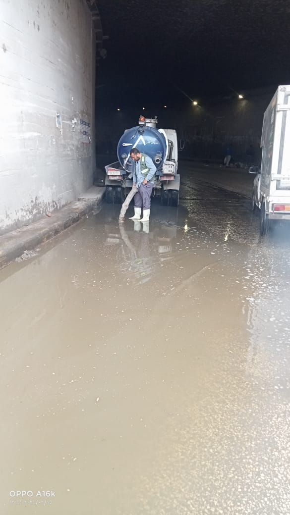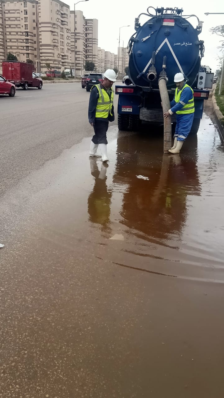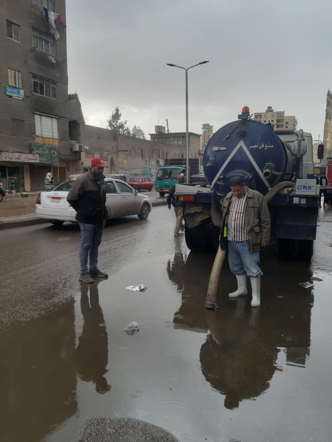 تواصل شركة مياه الشرب والصرف الصحي بالتعاون مع مسئولي الاحياء بمحافظة الجيزة، التعامل مع تجمعات الأمطار من خلال سياراتها ومعداتها المنتشرة بجميع الطرق والمحاور الرئيسية والأنفاق.