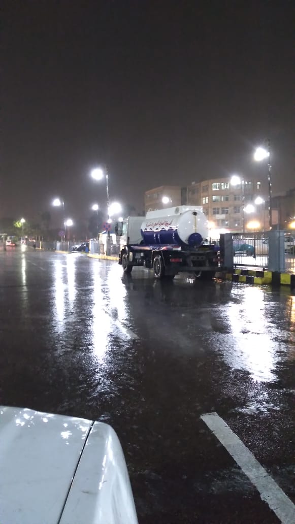 وكثف مسؤولو وتنفيذيو المحافظة من وجودهم بكافة الميادين والشوارع العامة والدفع بسيارات شفط المياه وعدم تراكمها.
