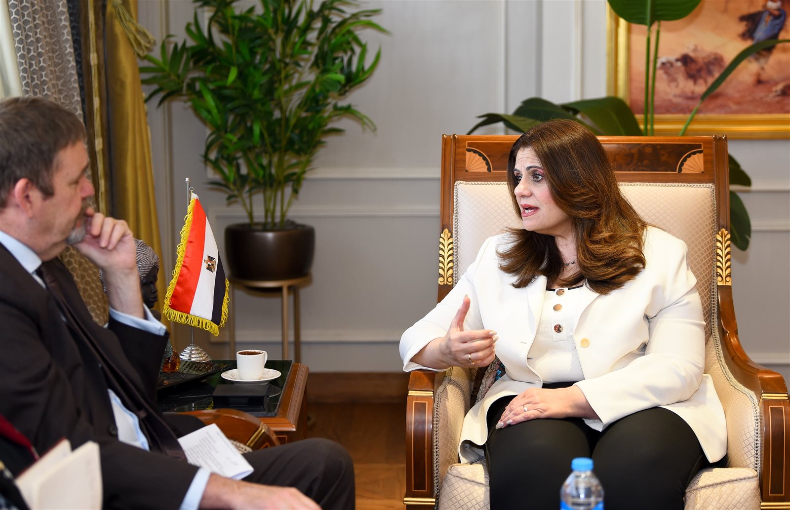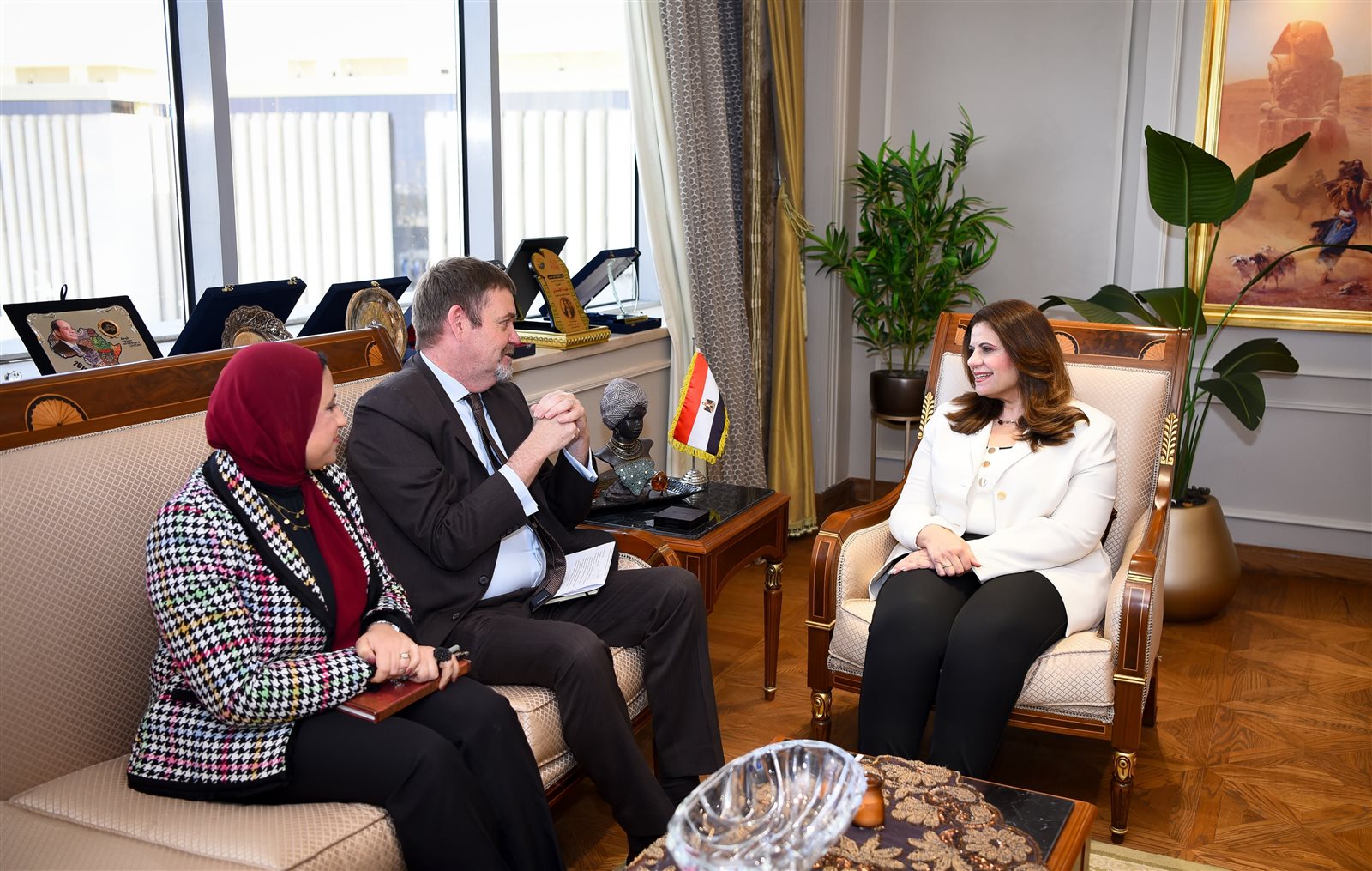 وكان اللقاء بحضور الدكتور صابر سليمان، مساعد وزيرة الهجرة للتطوير المؤسسي، دعاء قدري رئيس الإدارة المركزية لشئون مكتب الوزير، سارة مأمون، معاون وزيرة الهجرة للمشروعات والتعاون الدولي، سلمى صقر، معاون وزيرة الهجرة لشئون الجاليات والهيئات الدولية.