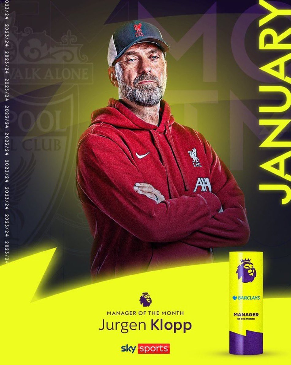 اختير الألماني يورجن كلوب المدير الفني لفريق ليفربول كأفضل مدرب في شهر يناير بالدوري الإنجليزي الممتاز.