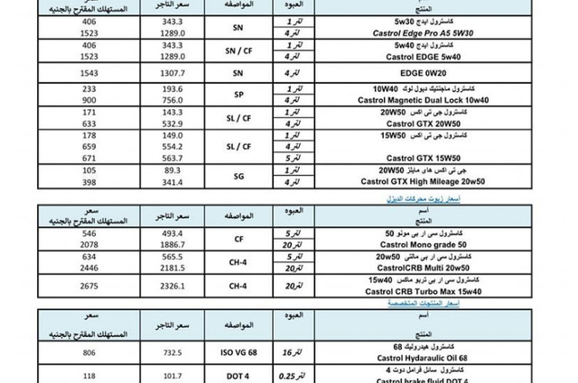 ووفقًا لما نشرته كاسترول ننشر الأسعار الجديدة لزيوت السيارات التى ارتفعت بشكل مبالغ فيه خلال عام 2024، وشملت الزيادة زيوت محركات البنزين ومحركات الديزل وبعض المنتجات المتخصصة، وهي كالتالي: