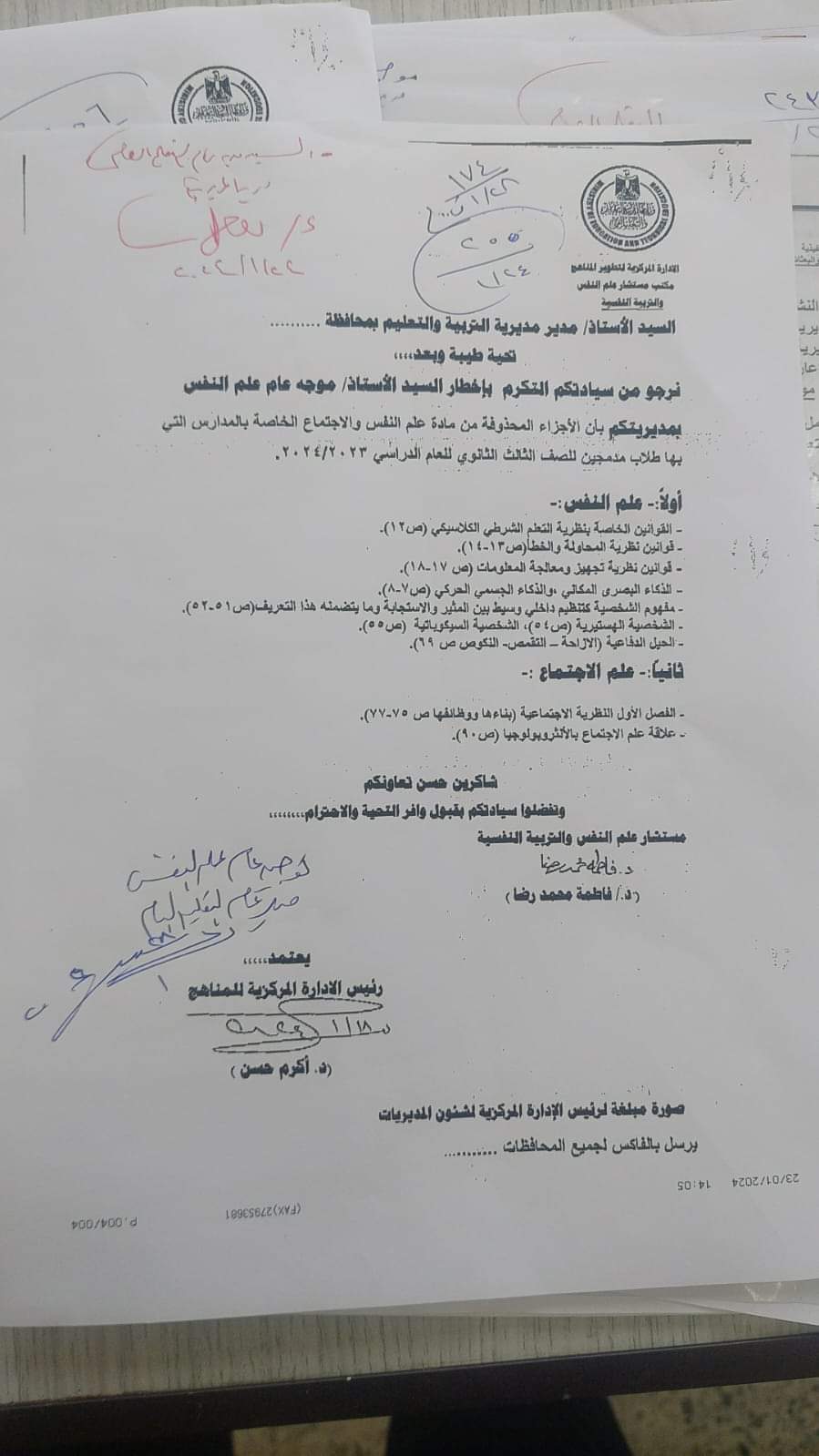 وأوضح أن قرار وزارة التربية والتعليم بحذف أجزاء من المنهج كان يخص فقط طلاب مدمجين الصف الثالث الثانوي العام في مادة علم النفس والإجتماع.