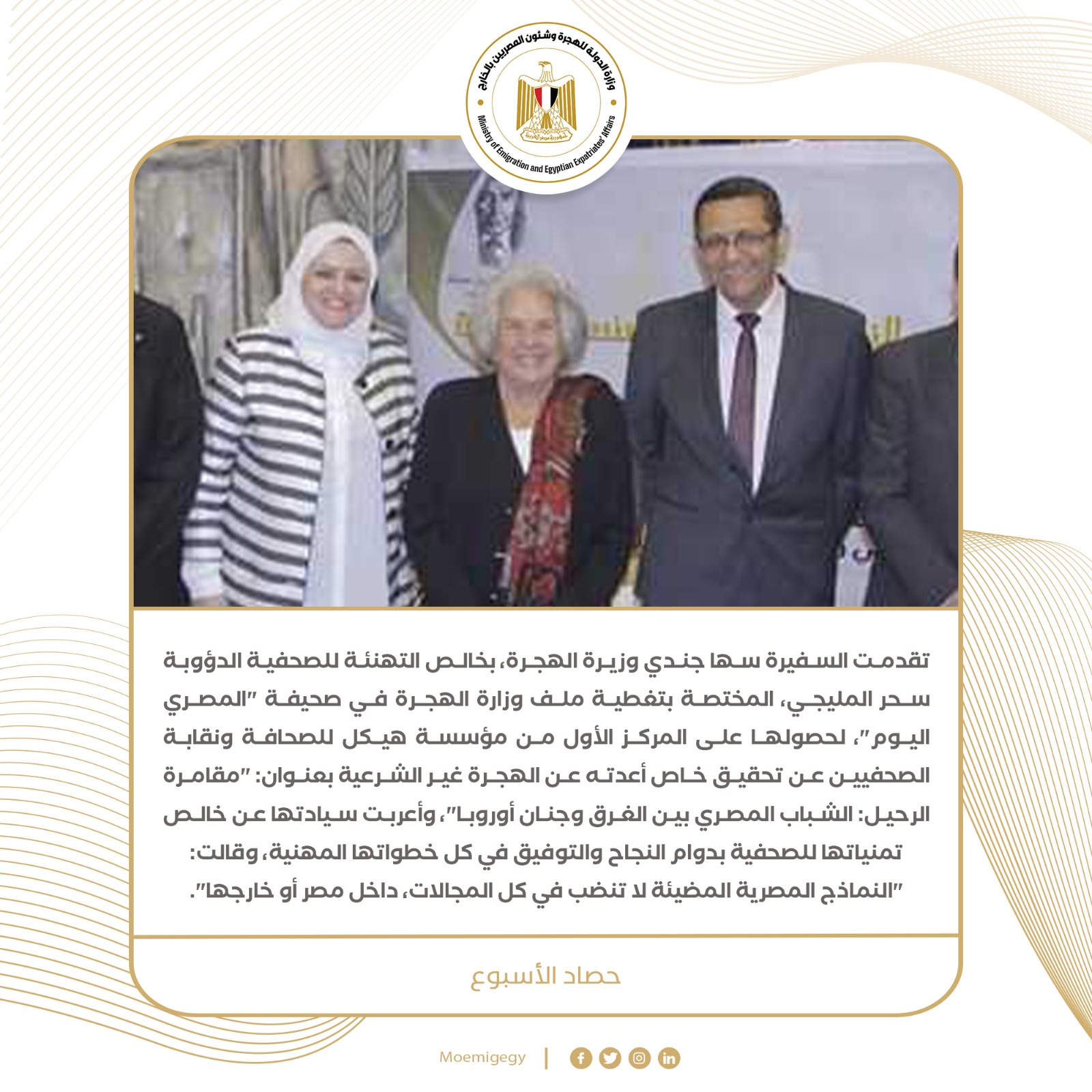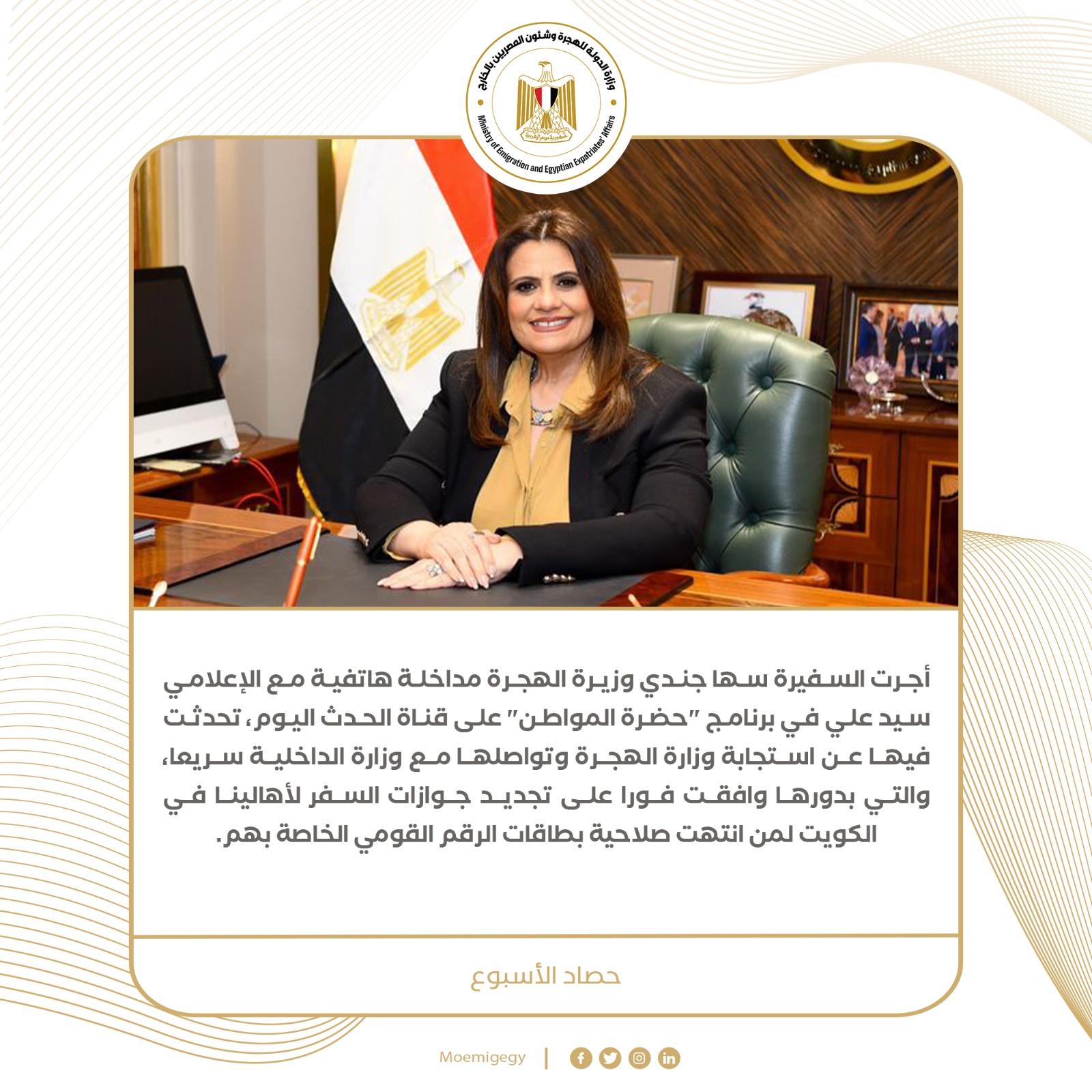 وخلال السطور التالية، نستعرض النشاط الكامل لوزيرة الهجرة كما يلي: