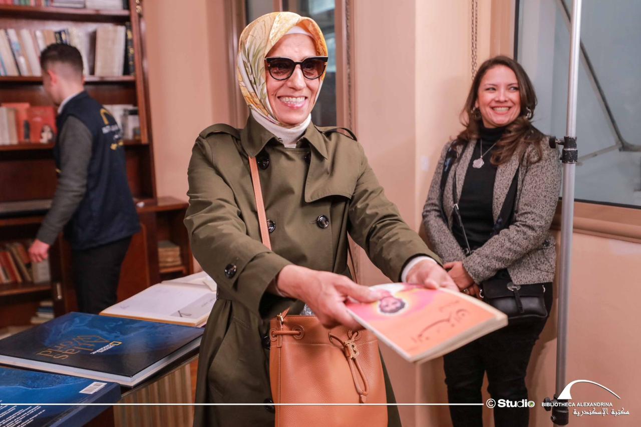 أهدت أم كلثوم كريمة الأديب الكبير الراحل نجيب محفوظ مكتبة والدها الخاصة إلى مكتبة الإسكندرية، تمهيدًا لإتاحتها لرواد المكتبة والباحثين والدارسين.