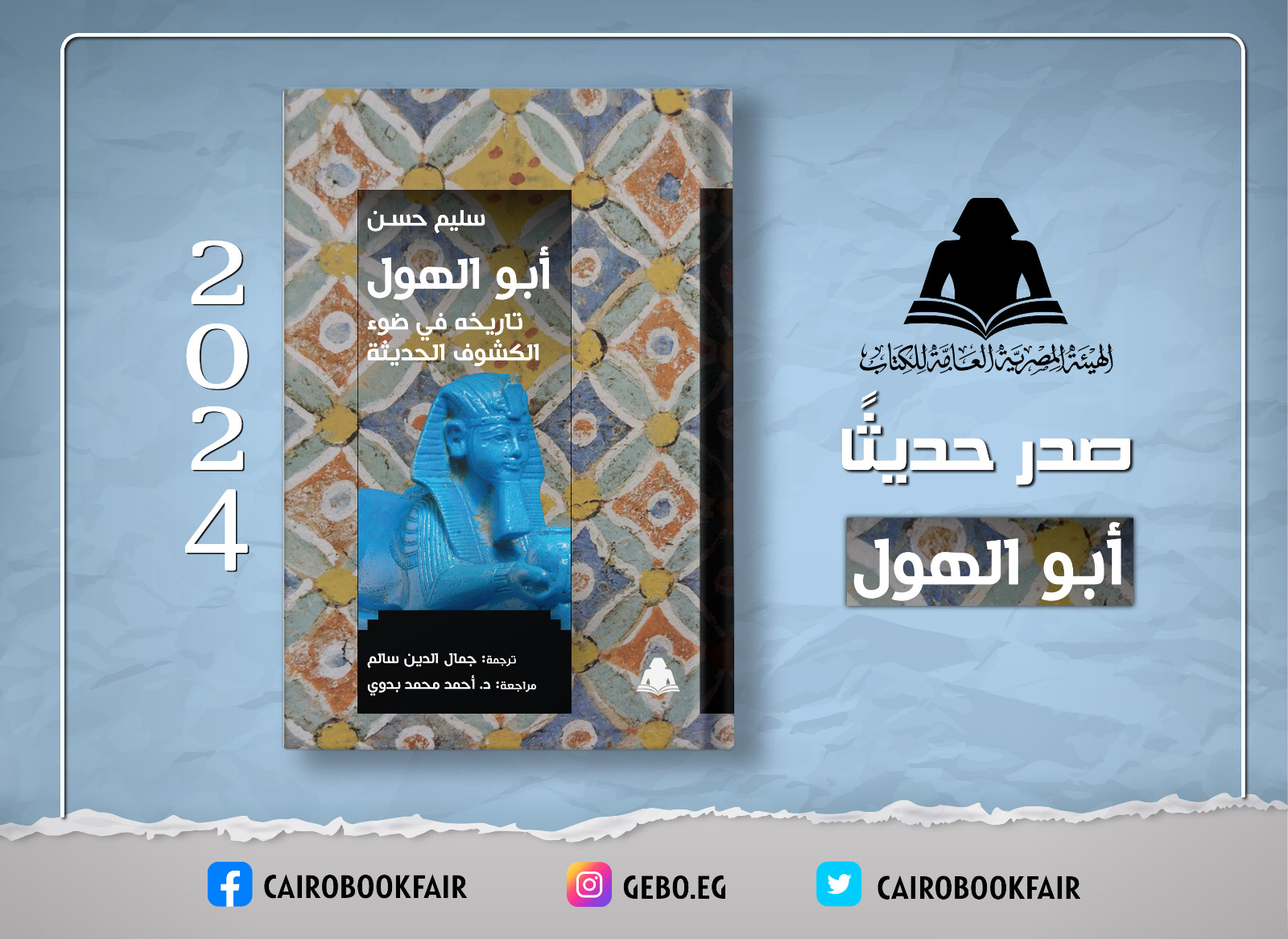 أصدرت الهيئة المصرية العامة للكتاب، برئاسة الدكتور أحمد بهي الدين، كتاب «أبو الهول.. تاريخه في ضوء الكشوف الحديثة» لعالم المصريات الدكتور سليم حسن، وترجمة جمال الدين سالم، ومراجعة الدكتور أحمد محمد بدوي.
