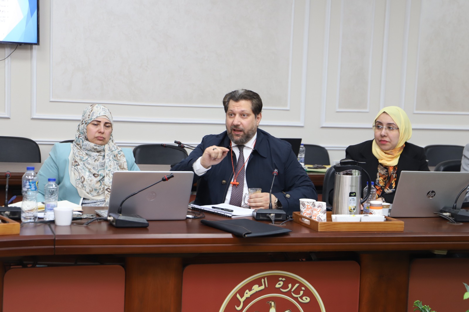 وحضر اللقاء من أعضاء اللجنة: اللواء أسامة فرج مستشار الوزارة للتطوير المؤسسي والتخطيط الإستراتيجية، وإيهاب عبد العاطي المستشار القانوني للوزير، وعبد الوهاب خضر المتحدث الرسمي والمستشار الإعلامي، وشيماء محمود رئيس الإدارة المركزية لشؤون مكتب الوزير، ود. شادي شلبي استشاري مشروع مهني 2030، ومحمد الهواري مدير عام إدارة شئون تراخيص مراكز التدريب الخاصة، وياسمين ممدوح مدير عام متابعة التدريب المهني، ود. فاطمة عبد القادر باحث بالإدارة العامة لتراخيص المراكز الخاصة، ورباب عبد الله باحث بالإدارة العامة لتراخيص المراكز الخاصة، وآية مدحت عضو اللجنة التنفيذية، والمهندس أحمد صديق عضو اللجنة التنفيذية.
