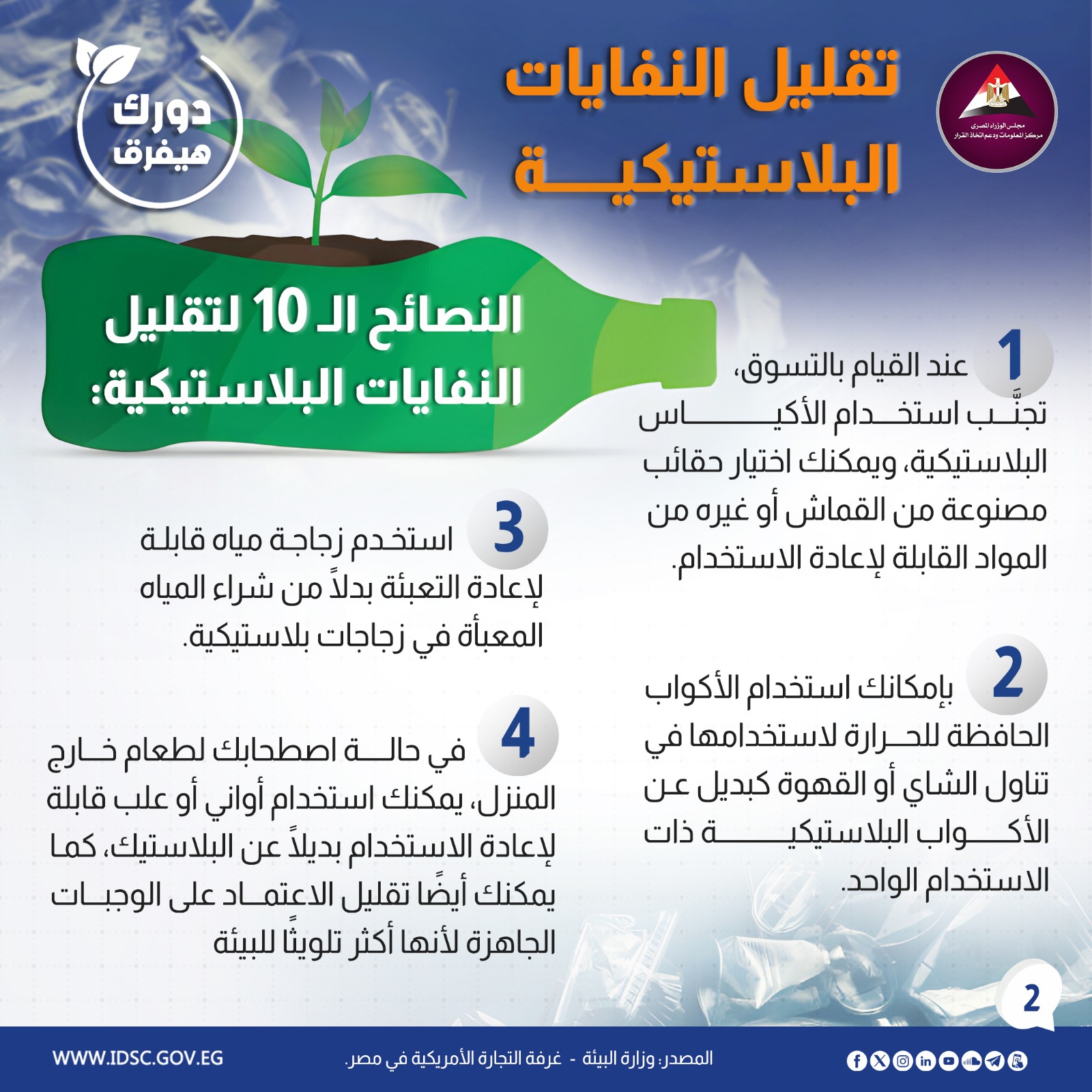 معلومات الوزراء يستعرض النصائح الـ10 لتقليل النفايات البلاستيكية (إنفوجراف)