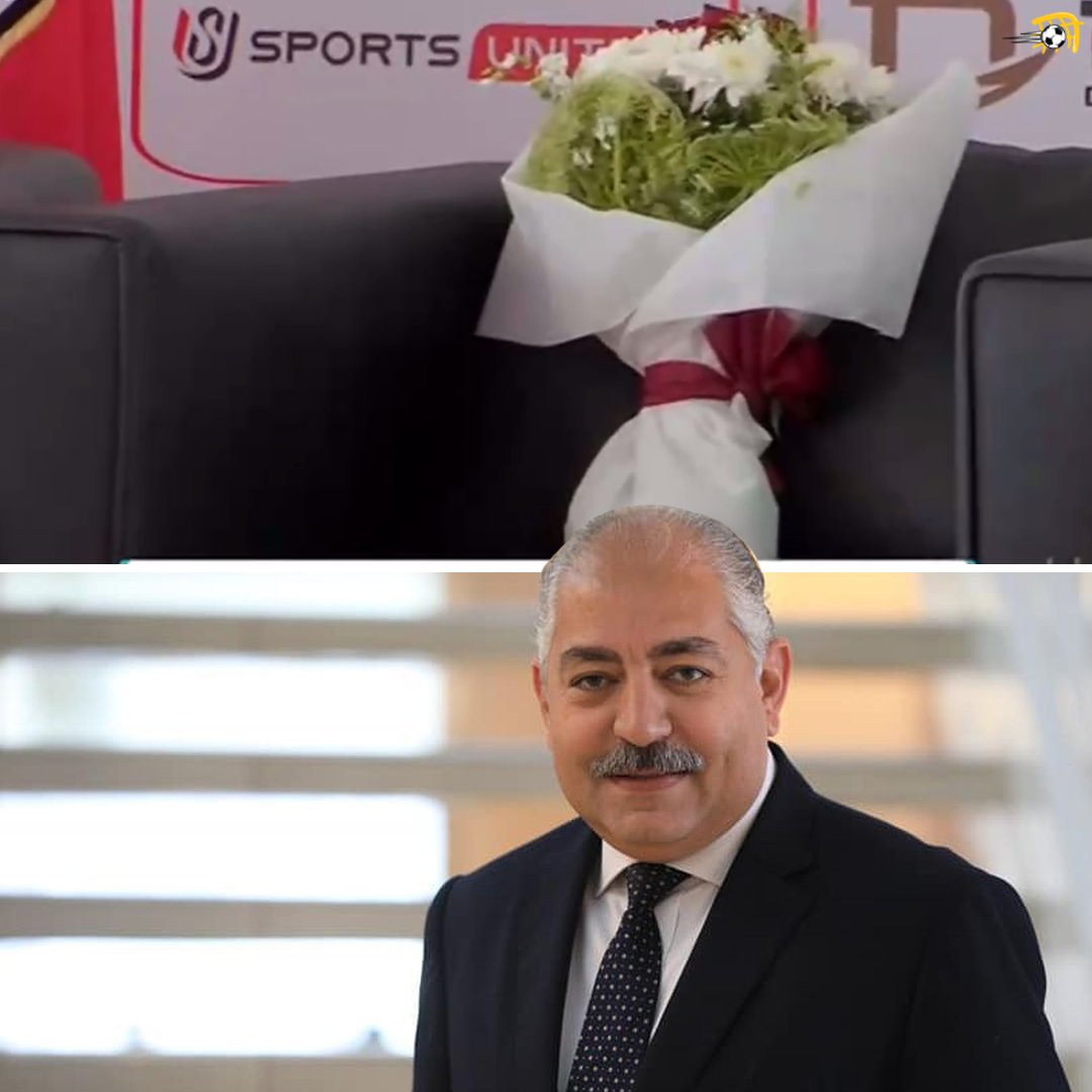 كرسي فارغ مزين بالزهور للعامري فاروق خلال زيارة مجلس الأهلي لنادي الزمالك