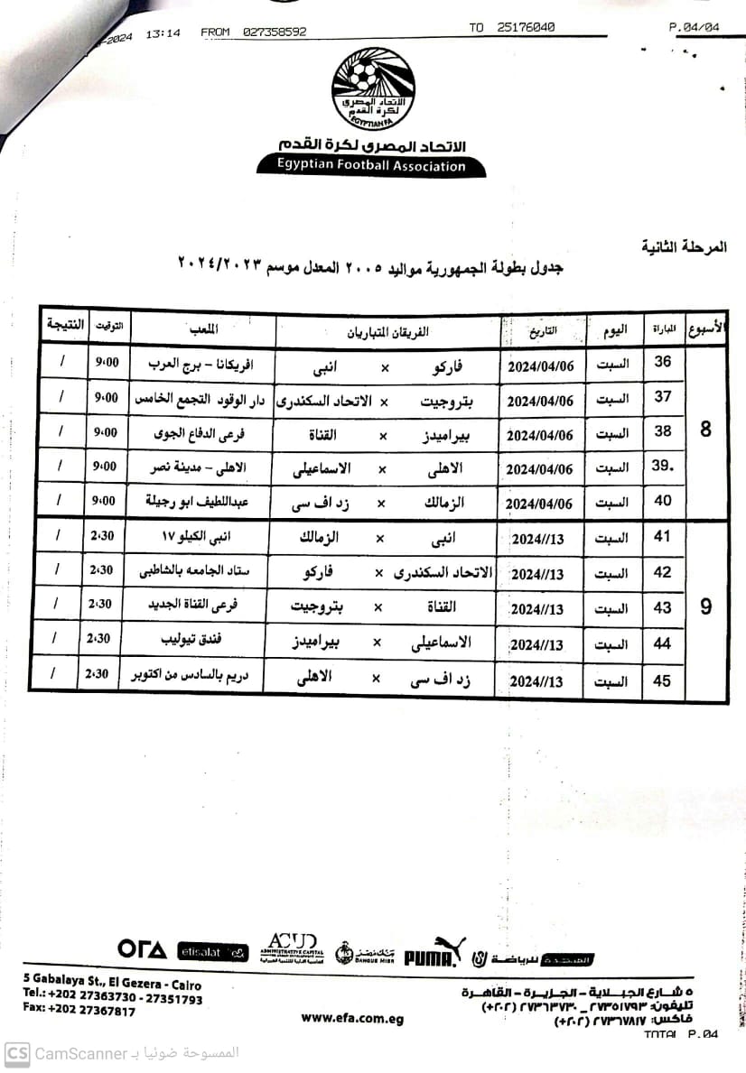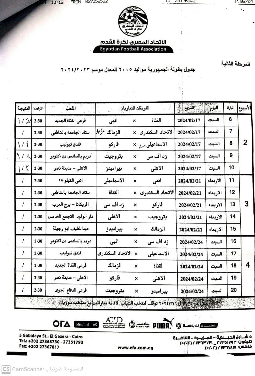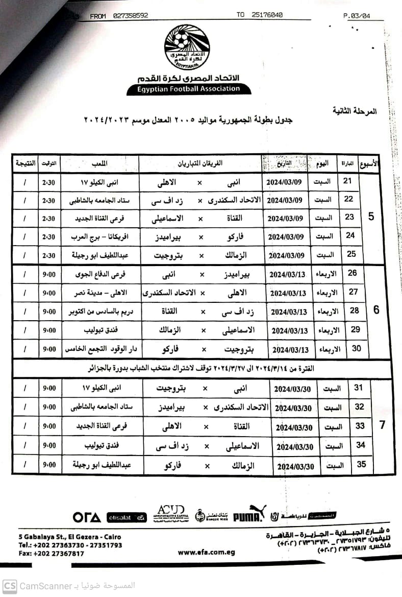 تعديل مواعيد مباريات دوري الجمهورية للناشئين 2005 بسبب المنتخب
