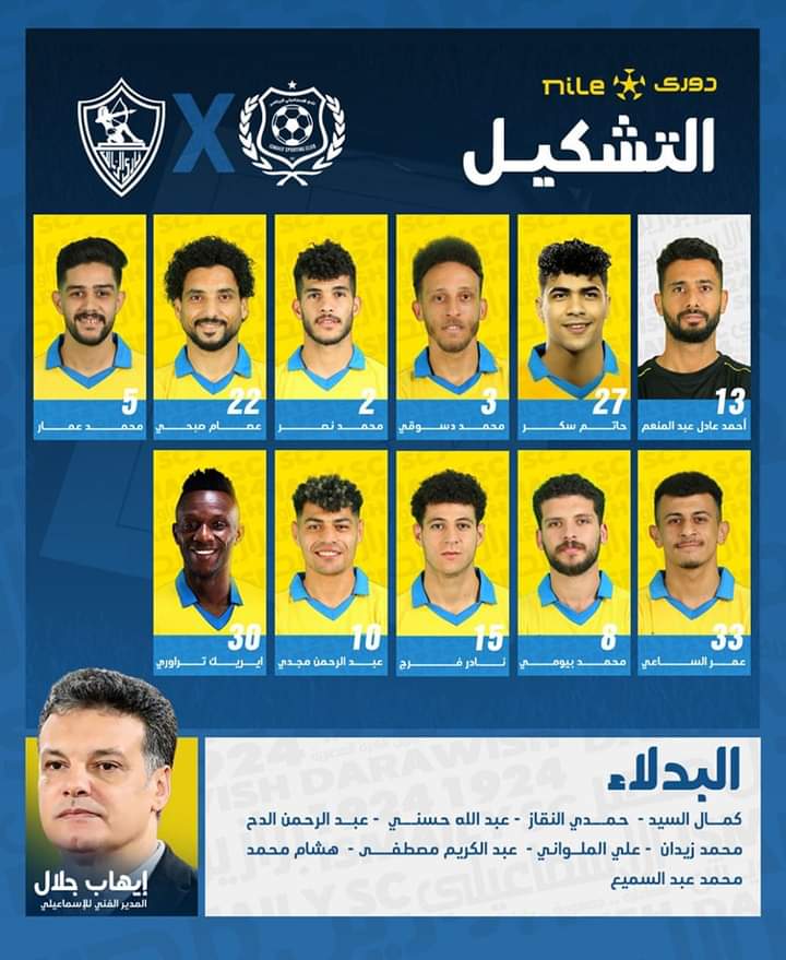 تشكيل الإسماعيلي لمباراة الزمالك في الدوري الممتاز