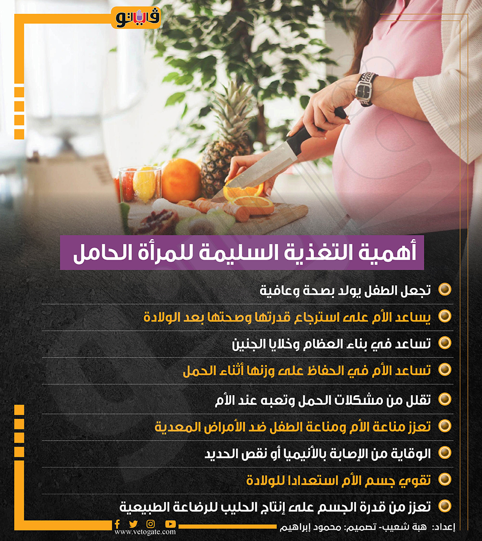 أهمية التغذية السليمة للمرأة الحامل (إنفوجراف) السبت 09/مارس/2024 - 08:46 م 3/9/2024 8:46:42 PM تغذية المرأة الحامل، فيتو هبة شعيب شارك طباعة 18 حجم الخط شارك طباعة المرأة الحامل تغذية المرأة الحامل أهمية التغذية السليمة للمرأة الحامل الدكتور محمد حلمى صحة الصحة