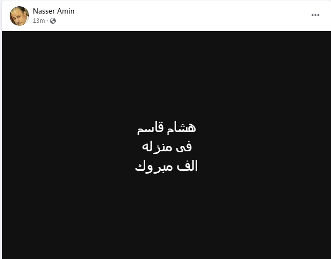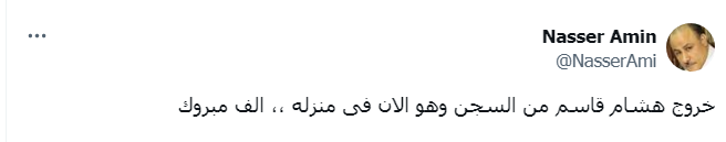 وعن خروج هشام قاسم، قال ناصر أمين عبر صفحته بالفيس بوك: "هشام قاسم فى منزله الف مبروك"