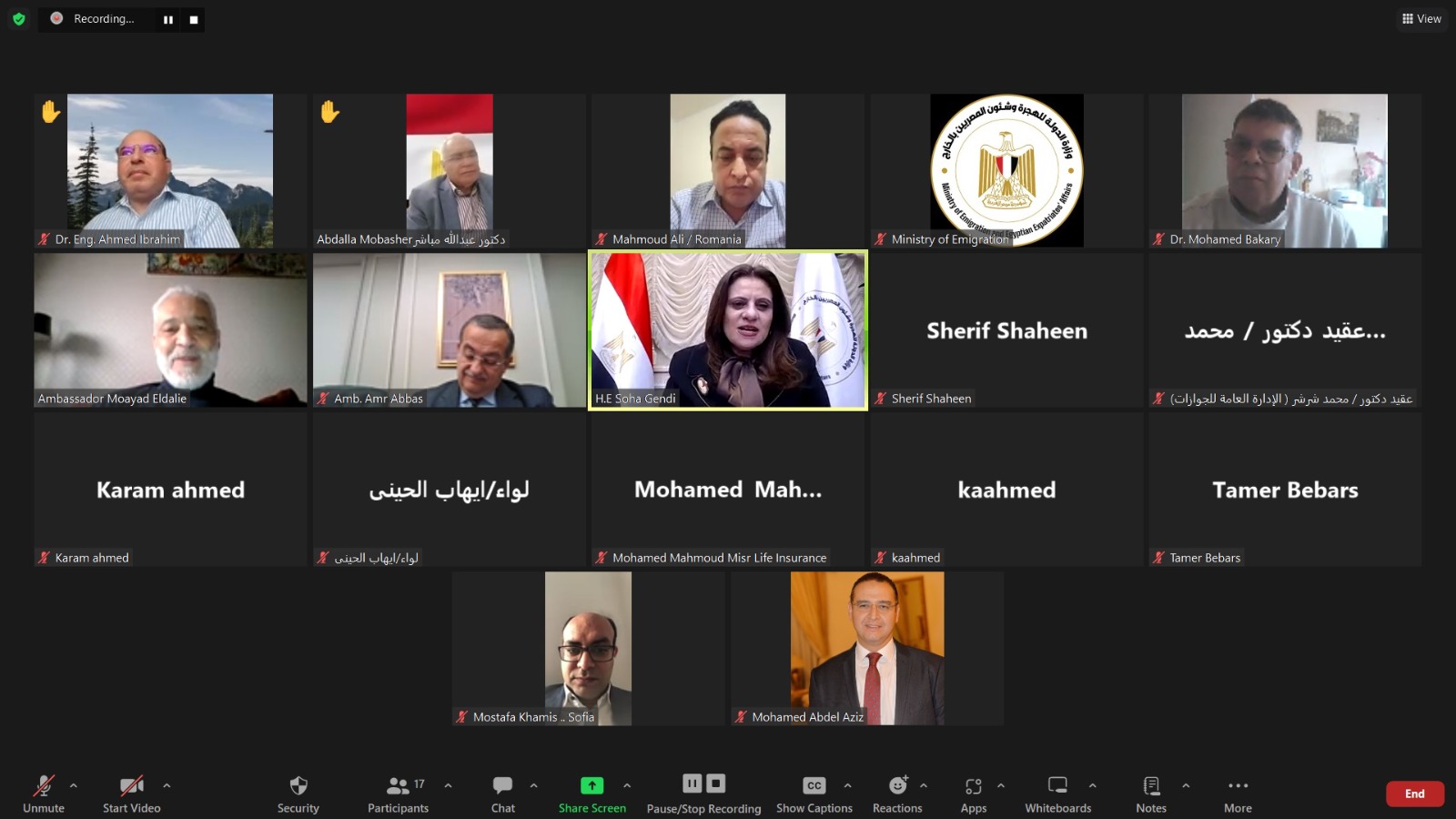 وأوضحت السفيرة سها جندي أن استراتيجية الوزارة تستهدف التواصل مع كافة شرائح المصريين بالخارج، وفي إطارها يتم التواصل المباشر مع الجاليات المصرية بالخارج، والتي تسعى من خلالها لحل أي مشكلات أو تحديات تواجه المصريين بالخارج؛ مبينة أن مبادرة «ساعة مع الوزيرة» تعد واحدة من ركائز هذه الاستراتيجية، حيث تم تنفيذ نحو 68 اجتماعًا افتراضيًا في إطار المبادرة، بهدف التواصل المستمر والفاعل والوصول لأكبر عدد من الجاليات بكل دول العالم.