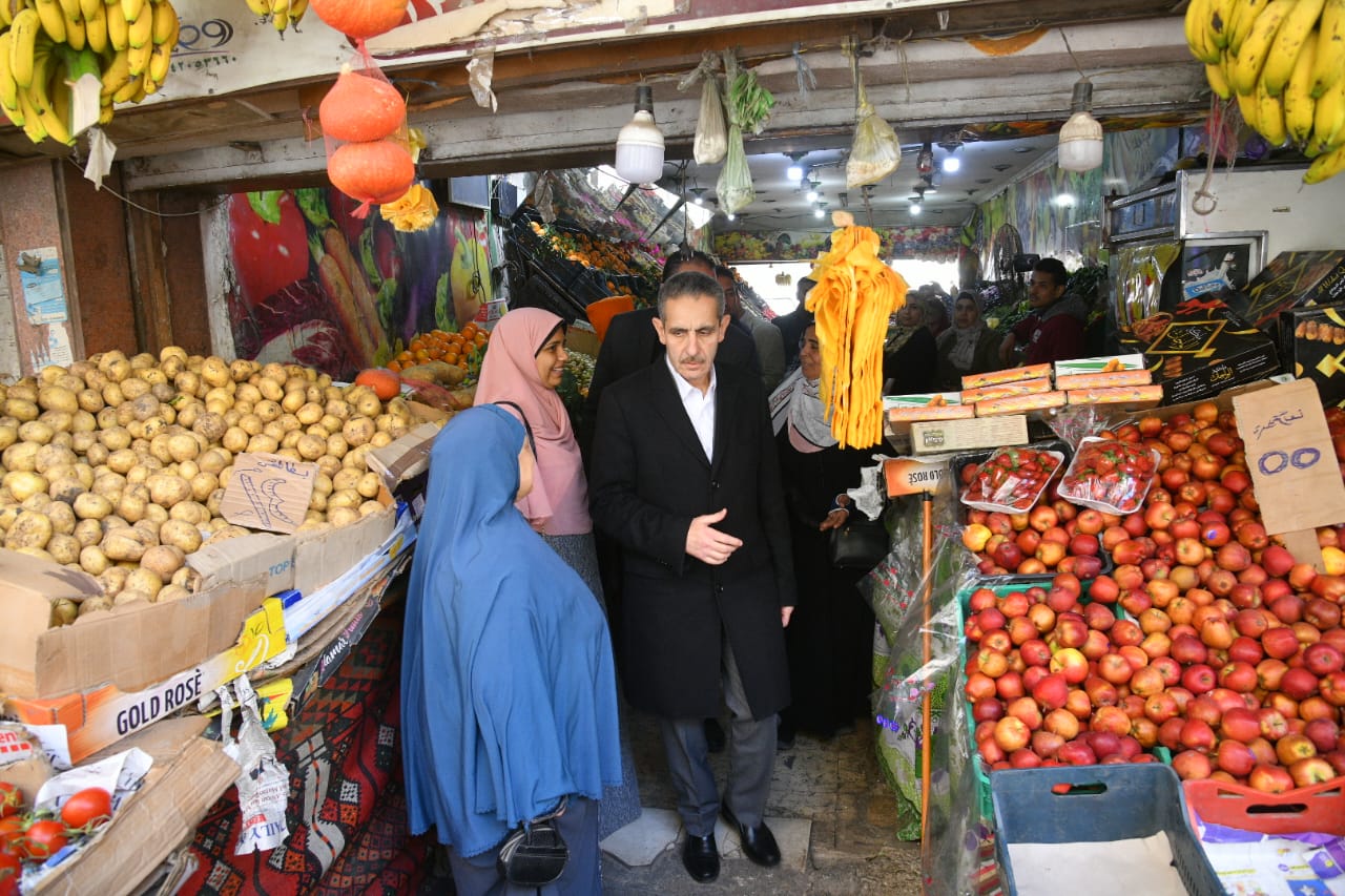 وعلى هامش الجوله تفقد المحافظ عددا من المحال التجارية ومحال بيع الفواكه والخضروات للتأكد من اسعار السلع.