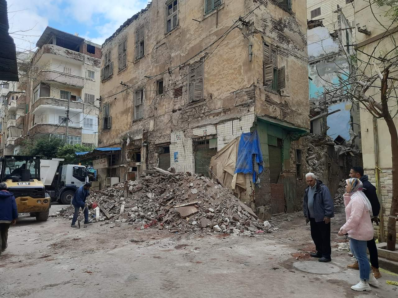 كما تابعت المهندسة نهى خليفة رئيس حي الجمرك اليوم إزالة الأجزاء المعلقة من العقار 10، 12 نصر الدين، حيث تبين سقوط الأجزاء الخلفية للعقارين بدون إصابات وهما خاليان من السكان، وجار رفع مخلفات الأتربة، وجاء ذلك حفاظا على سلامة المواطنين.