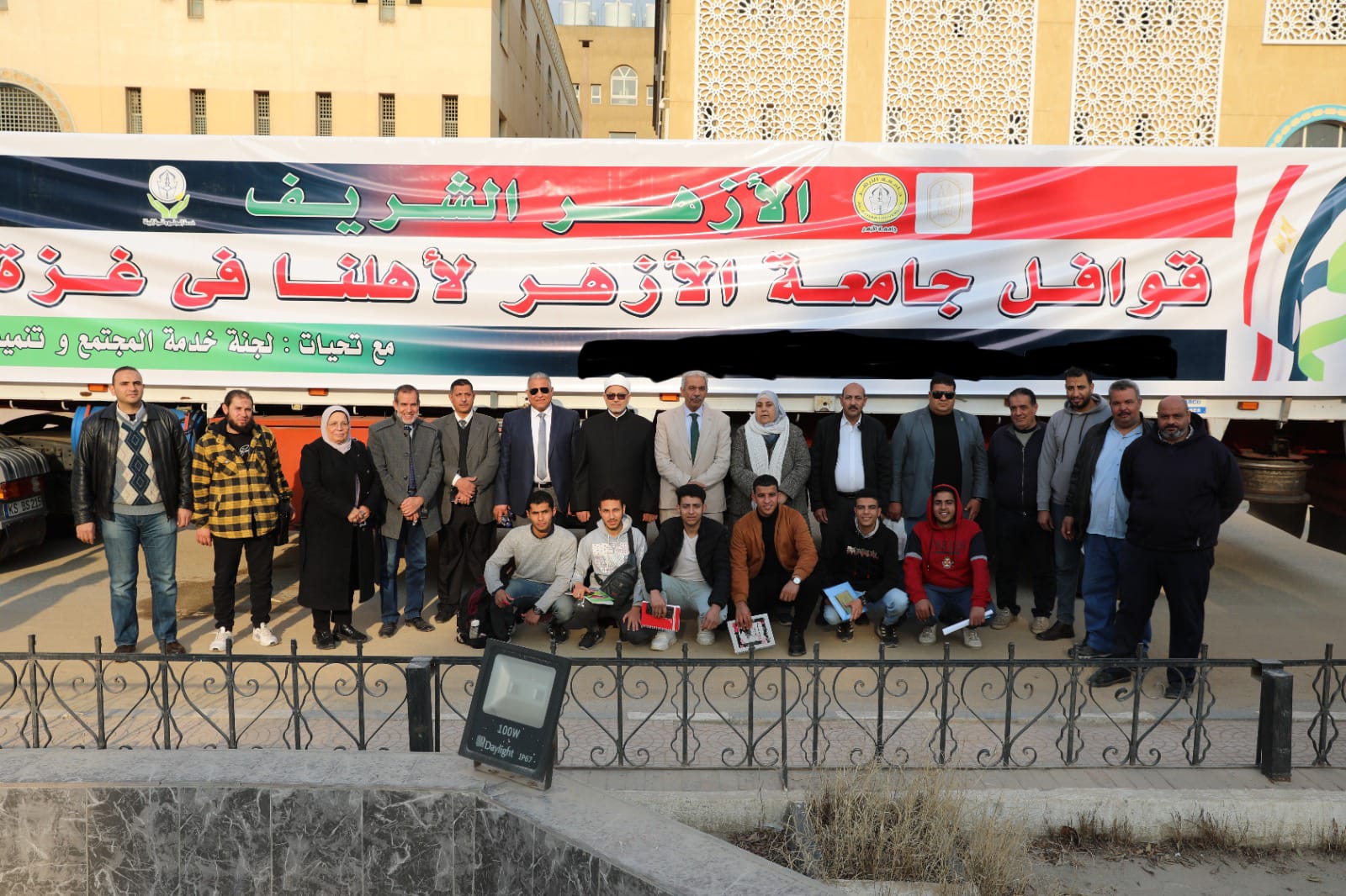 جامعة الأزهر تطلق قافلة المساعدات الإنسانية الثالثة دعمًا لأهالي غزة (صور)