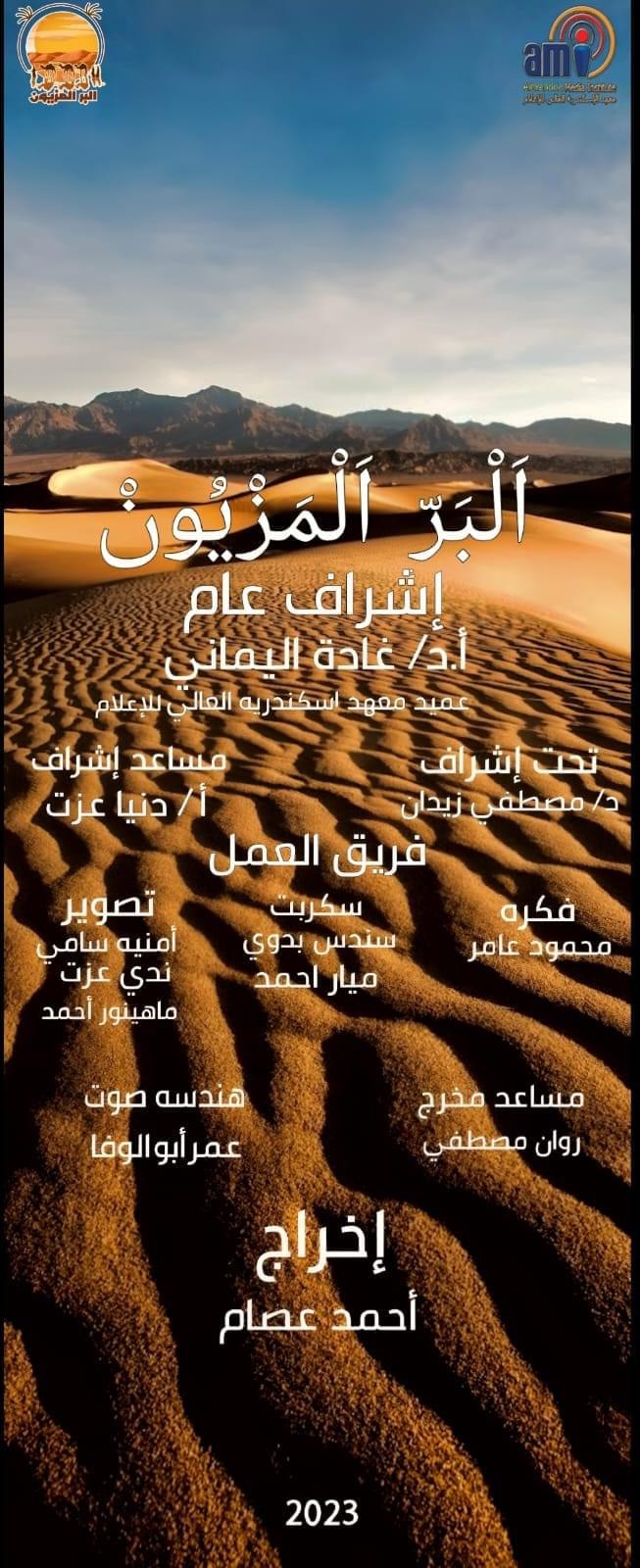 وأخيرًا الفيلم التسجيلى "البر المزيون" إخراج أحمد عصام ويدور بشكل توثيقي عن بحيرة المأمور بالواحات وطبيعة المكان والتى تشكلت من خلال ظروف طبيعية يحاكيها الفيلم.