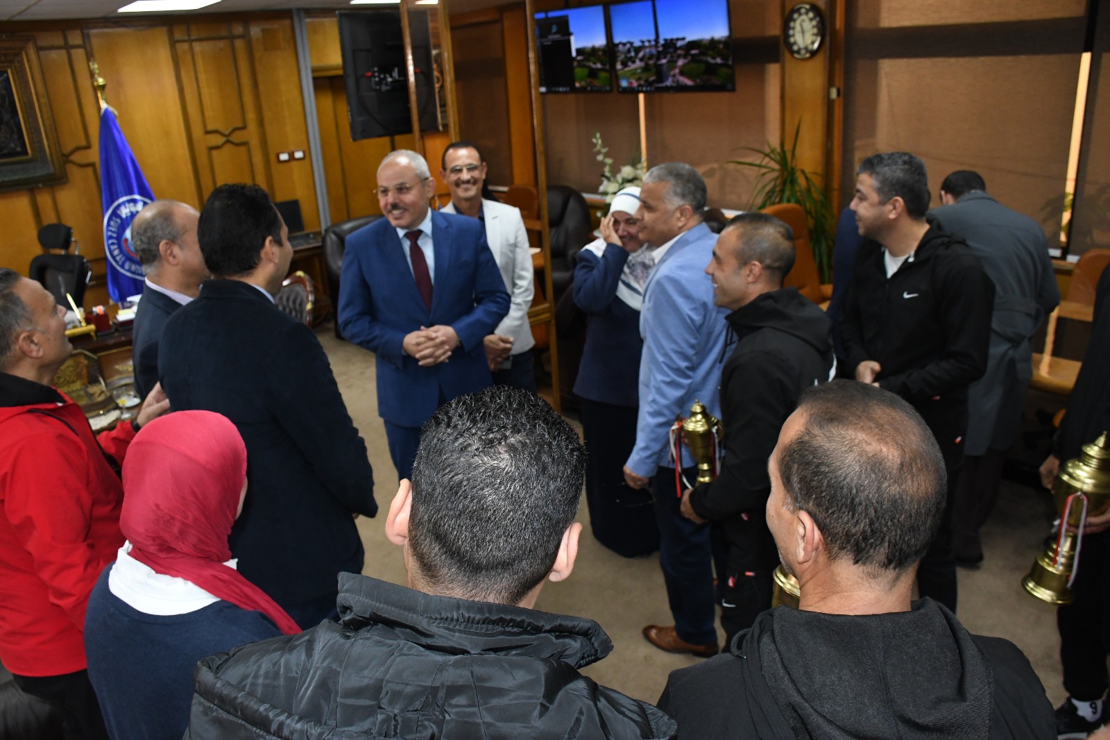 رئيس جامعة القناة يُكرم منتخب كرة القدم