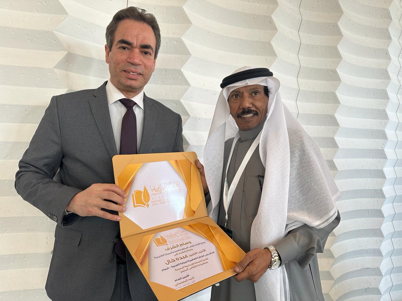 منح اتحاد كتاب أفريقيا وآسيا الكاتب والروائي السعودي البارز عبده خال (وسام الشرف) تقديرًا لدوره الكبير في الحياة الثقافية العربية.