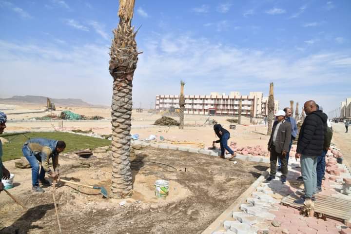 وخلال الجولة تفقد الدكتور عبدالعزيز طنطاوي واللواء محمد سالمان الزملوط مبنى كلية الزراعة الجديد بعد إنتهاء أعمال التشطيبات الداخلية، وأعمال تأسيس مسجد الجامعة الجاري إنشاؤه بالجهود الذاتية على مساحة ٥٠٠م٢، كما تضمنت الجولة زيارة لمجمع الملاعب الرياضية المُقام على مساحة ٣٢ ألف م٢ ويضم ٧ ملاعب متنوعة ( طائرة - تنس - سلة - خماسي - متعدد الأغراض).