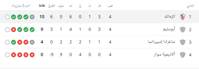 وفي السطور التالية نعرض ترتيب مجموعة الزمالك في الكونفدرالية قبل انطلاق الجولة الخامسة.