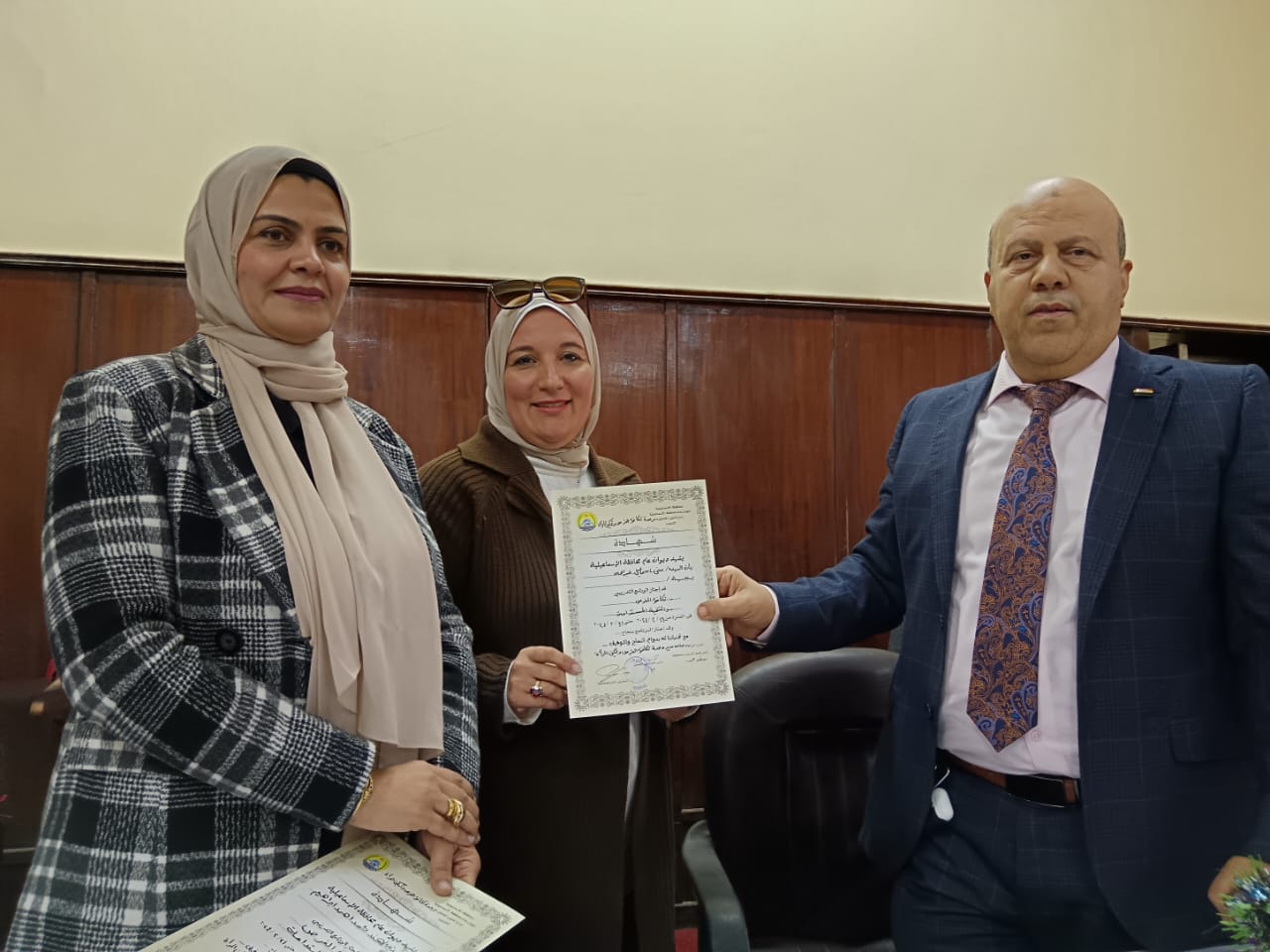 ومن جانبه قام ماهر كامل هاشم السكرتير المساعد لمحافظة الإسماعيلية، بتكريم وتسليم شهادات تقدير للسادة أعضاء هيئة التدريس المحاضرين والمشاركين بالورشة من كلية التجارة جامعة قناة السويس ومدير إدارة الاتصالات والمؤتمرات بقطاع شئون المجتمع، وتنمية البيئة جامعة قناة السويس والمتدربين.