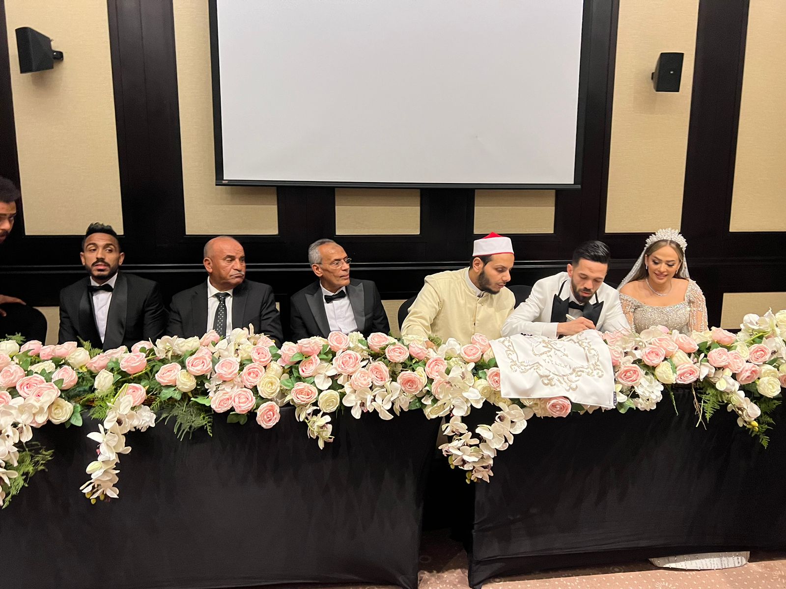 وتداول رواد مواقع التواصل الاجتماعي لحظة عقد قران شقيقة محمود كهربا أثناء حفل زفافها.