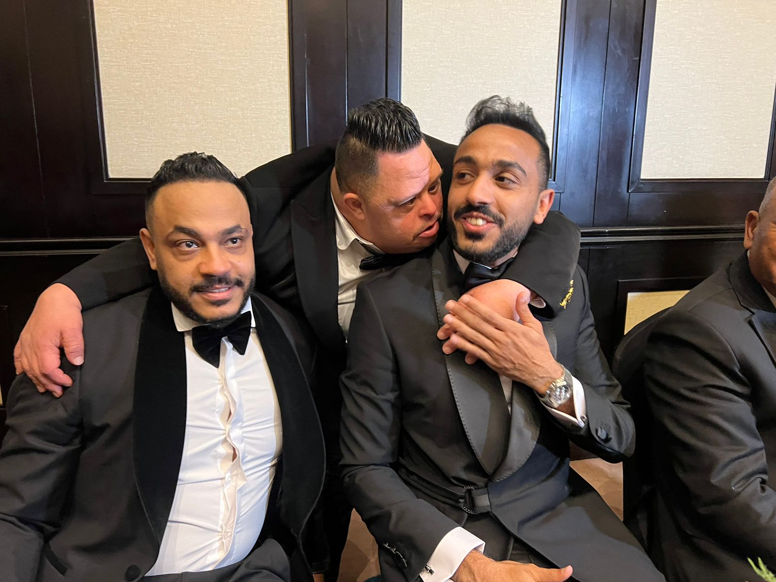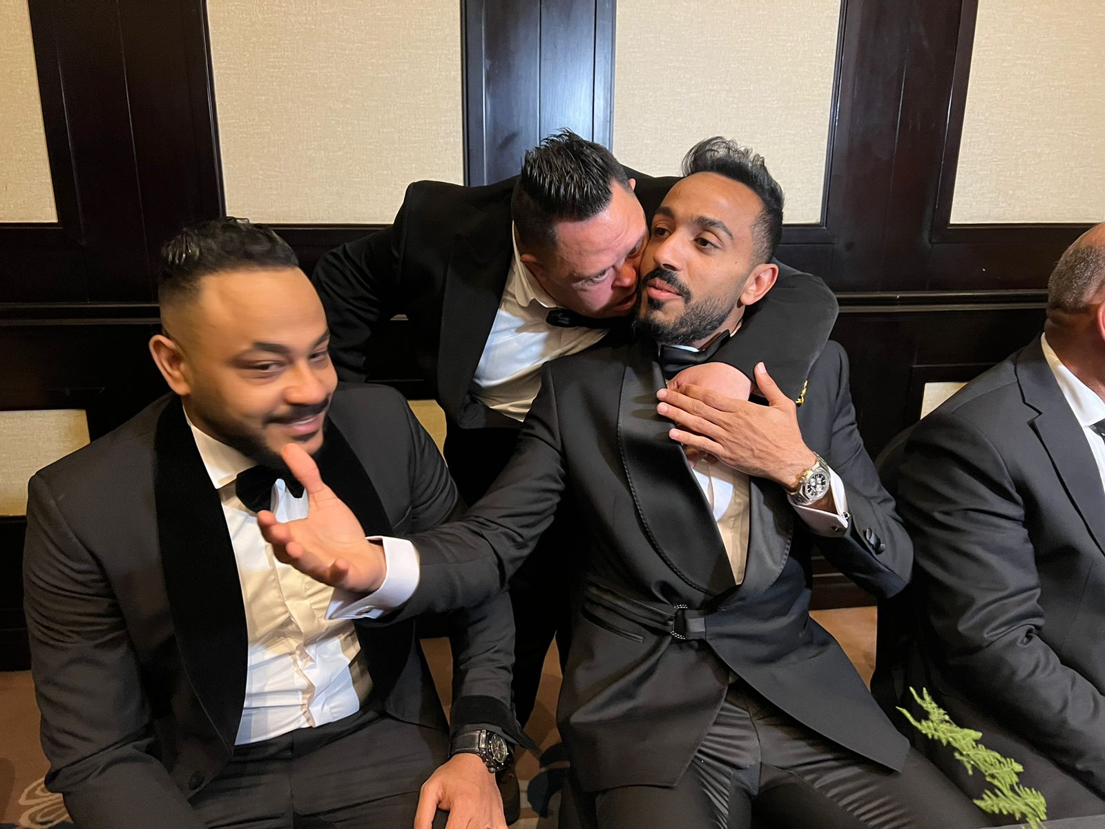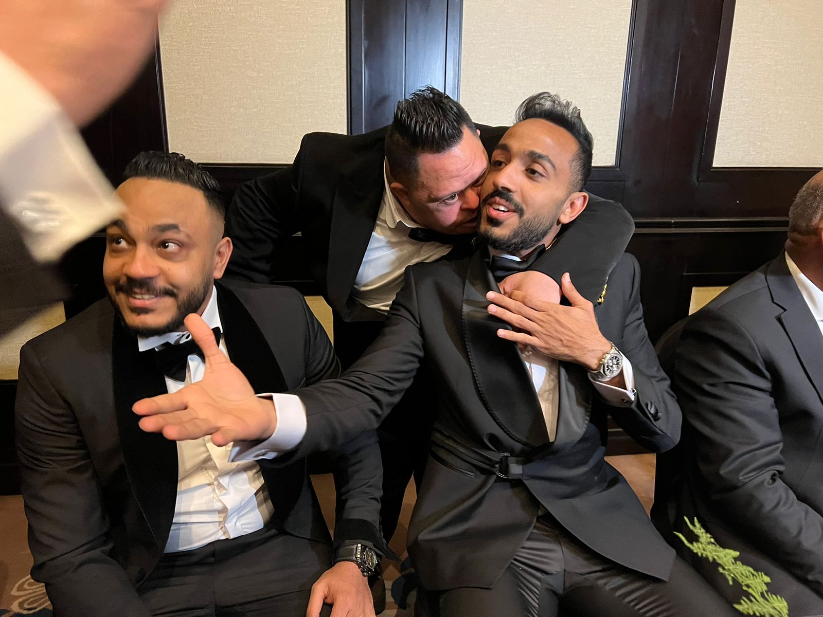 وتداول رواد مواقع التواصل الاجتماعي مجموعة من الصور لـ أمح الدولي في حفل زفاف شقيقة كهربا، وهو يحتضن نجم الأهلي ويقبله.