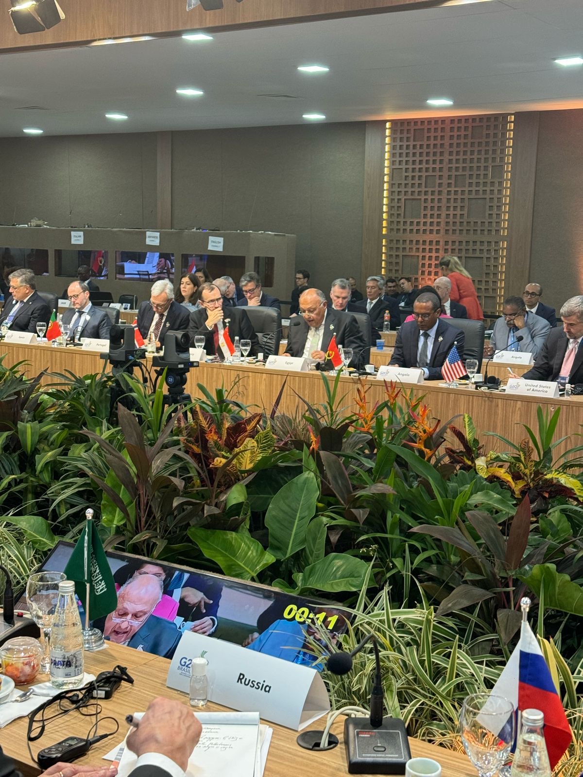 وطالب وزير الخارجية مجموعة العشرين وأعضائها بإنهاء الاستقطاب الراهن، حاثًا إياهم على السعي الجاد نحو الالتزام الصادق والكامل بالقانون الدولي والقانون الدولي الإنساني وقرارات الأمم المتحدة ذات الصلة، والعمل على تحقيق وقف فوري ومستدام للعدائيات، ووصول المساعدات الإنسانية للشعب الفلسطيني دون عوائق. كما شدد على أهمية ضمان امتناع إسرائيل عن أي تحرك عسكري في رفح من شأنه تهجير أو نقل الشعب الفلسطيني للدول المجاورة.
