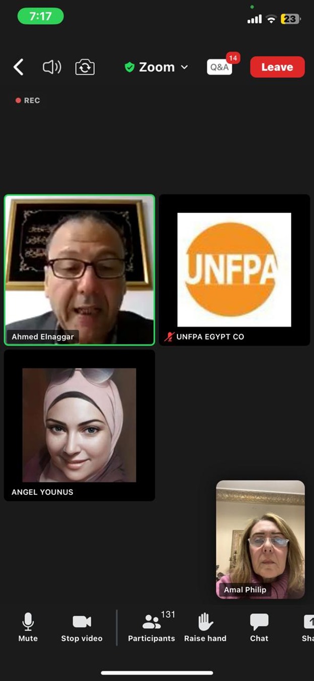 نظم المجلس القومى للمرأة بالتعاون مع صندوق الأمم المتحدة للسكان من خلال وحدة مناهضة العنف ضد المرأة بالمجلس جلسة افتراضية لمقدمى الخدمة الصحية حول" الإطار التشريعي لجرائم العنف ضد المرأة والقانون الخاص بختان الإناث"، استهدفت 135 طبيب وممرضة من المستشفيات الجامعية ووحدات الرعاية الأولية التابعة لوزارة الصحة والسكان والقائمين على إدارة وحدات المرأة الآمنة.