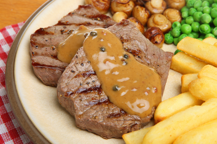 - ضعى ستيك اللحم فى طبق التقديم، وزينيه بصوص الفلفل الأسود وقدميه ساخنا.