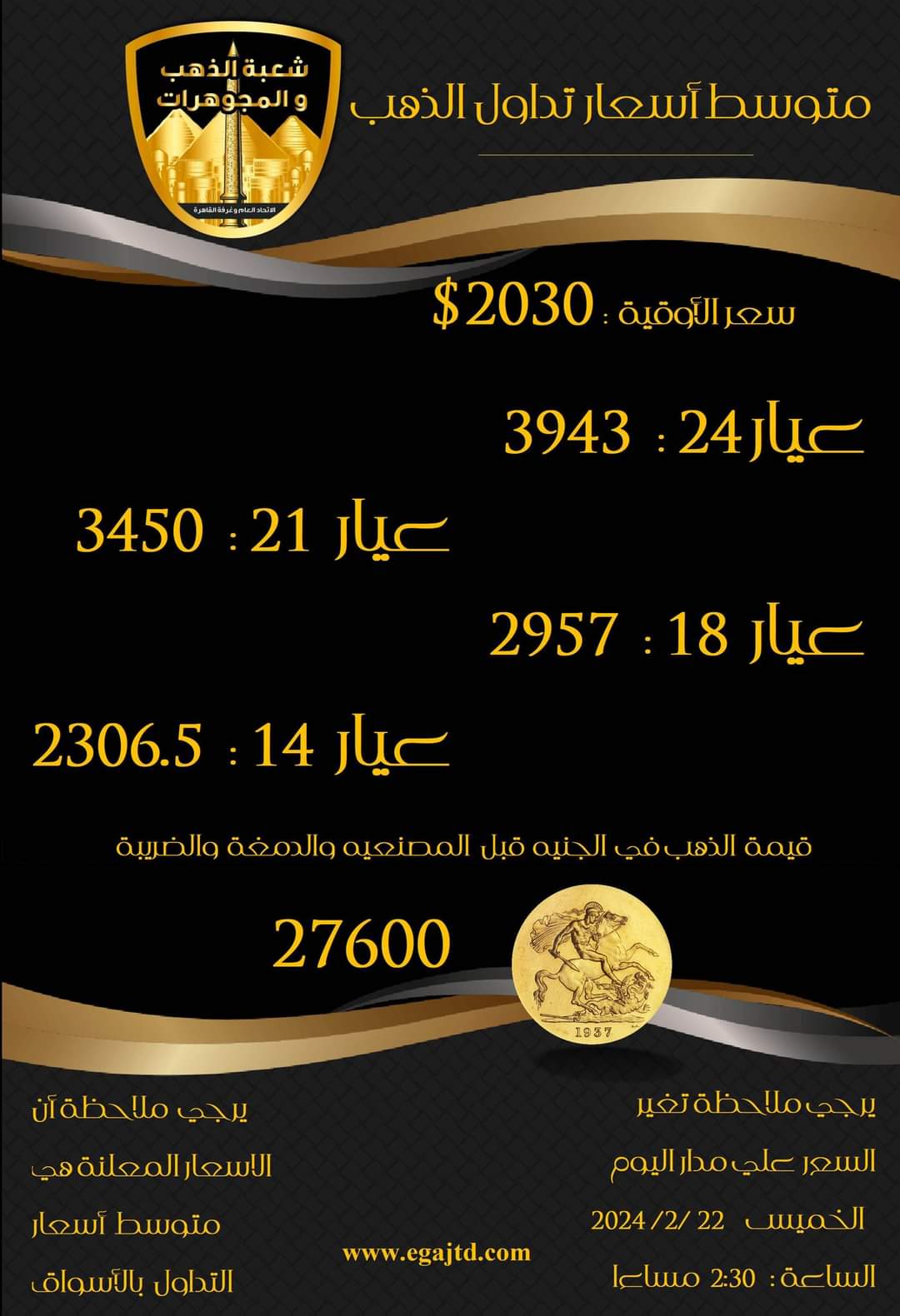 سجل الجنيه الذهب نحو 27600 جنيهًا.