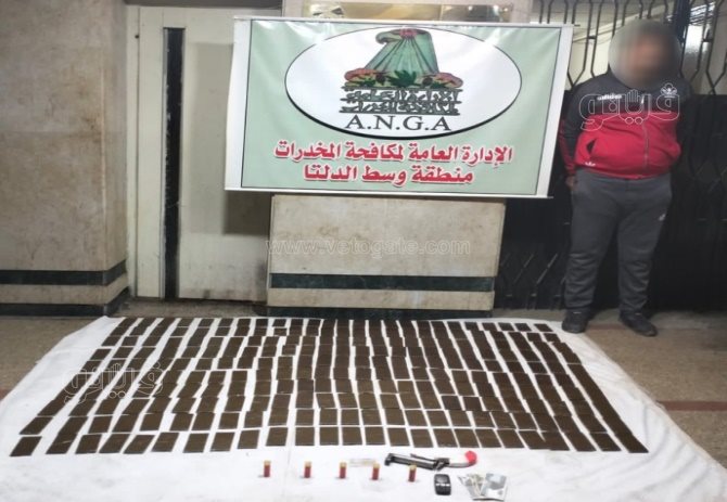 كما ضبط عنصر إجرامى بدائرة مركز شرطة قطور بالغربية وبحوزته (250 طربة لمخدر الحشيش وزنت 25 كيلو جراما – فرد خرطوش وعدد من الطلقات).