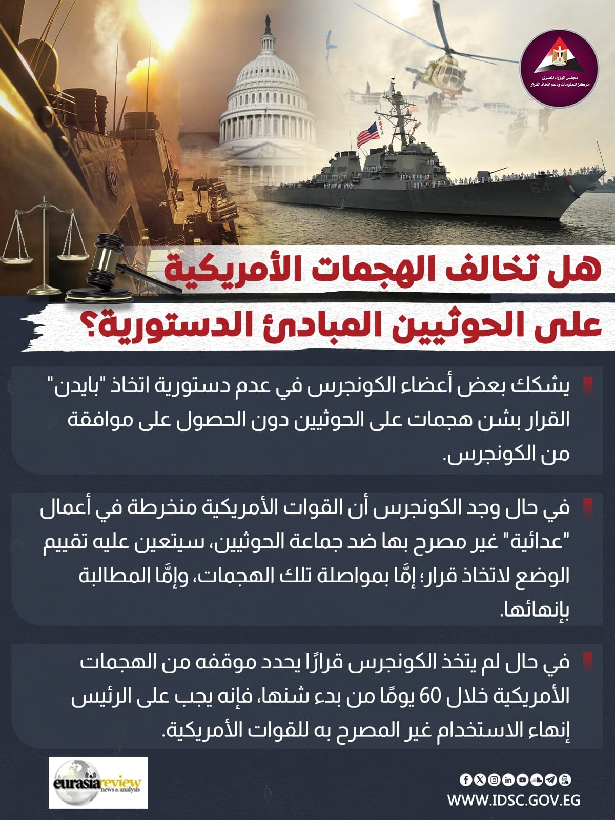 هل تخالف الهجمات الأمريكية على الحوثيين المبادئ الدستورية (إنفوجراف)