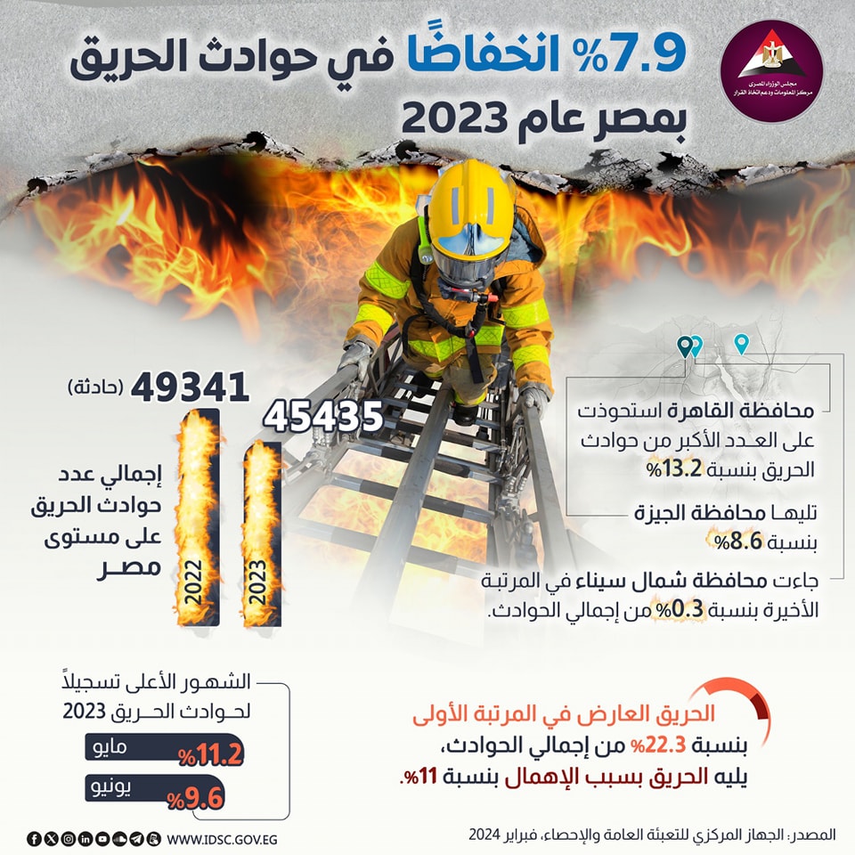 7.9 % انخفاضا في حوادث الحريق بمصر عام 2023 (إنفوجراف)