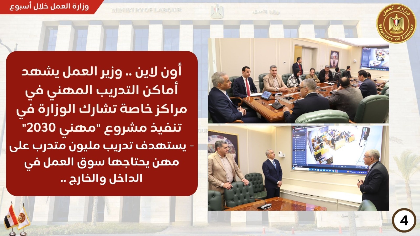 وتابع حسن شحاتة وزير العمل،التَطُورات الجديدة في خطة تنفيذ مشروع "مهني 2030"، الذي أطلقته "الوزارة"، منتصف الشهر الماضي، لتدريب مليون مُتدرب سنويًا، وتأهليهم لاحتياجات سوق العمل في الداخل والخارج، بالتعاون مع "القطاع الخاص"..