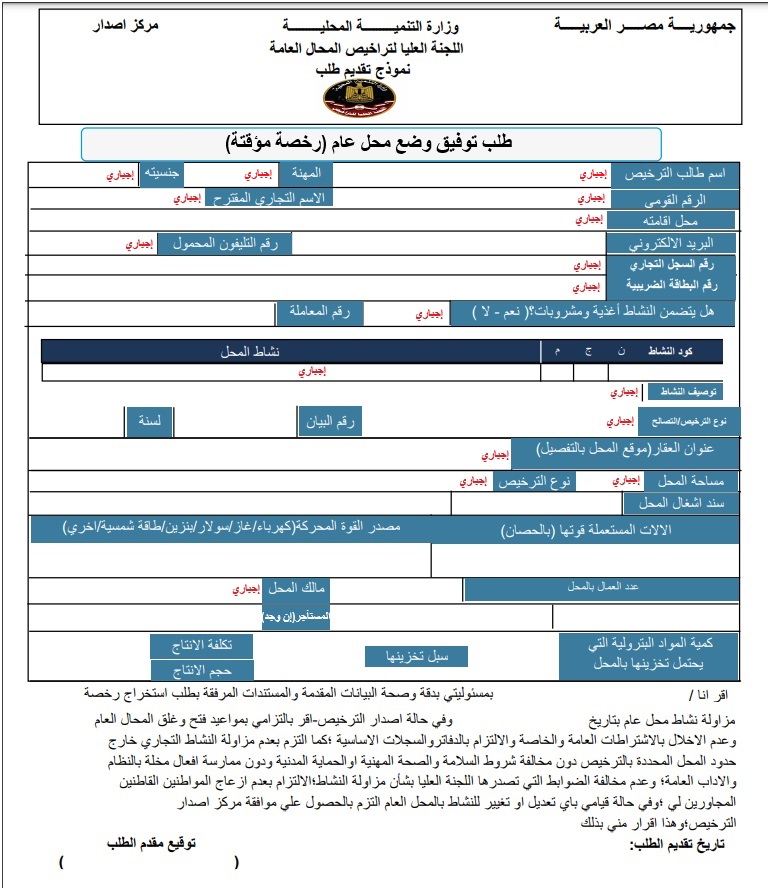 وأشار محافظ القاهرة إلى أن الفرق المدعومة بسيارة المركز التكنولوجى ستتسلم من صاحب المحل فى مكانه المستندات المطلوبة لترخيص النشط كمستخرج سجل تجارى حديث، والبطاقة الضريبية، ونوع النشاط، وصفة مقدم الطلب، وعنوان المحل المراد ترخيصه، ورسم كروكى له، مع منحه إيصال يفيد تقديمه لطلب الترخيص يجنبه التعرض لأى قرار بالغلق لحين الانتهاء من استكمال إجراءات الترخيص.
