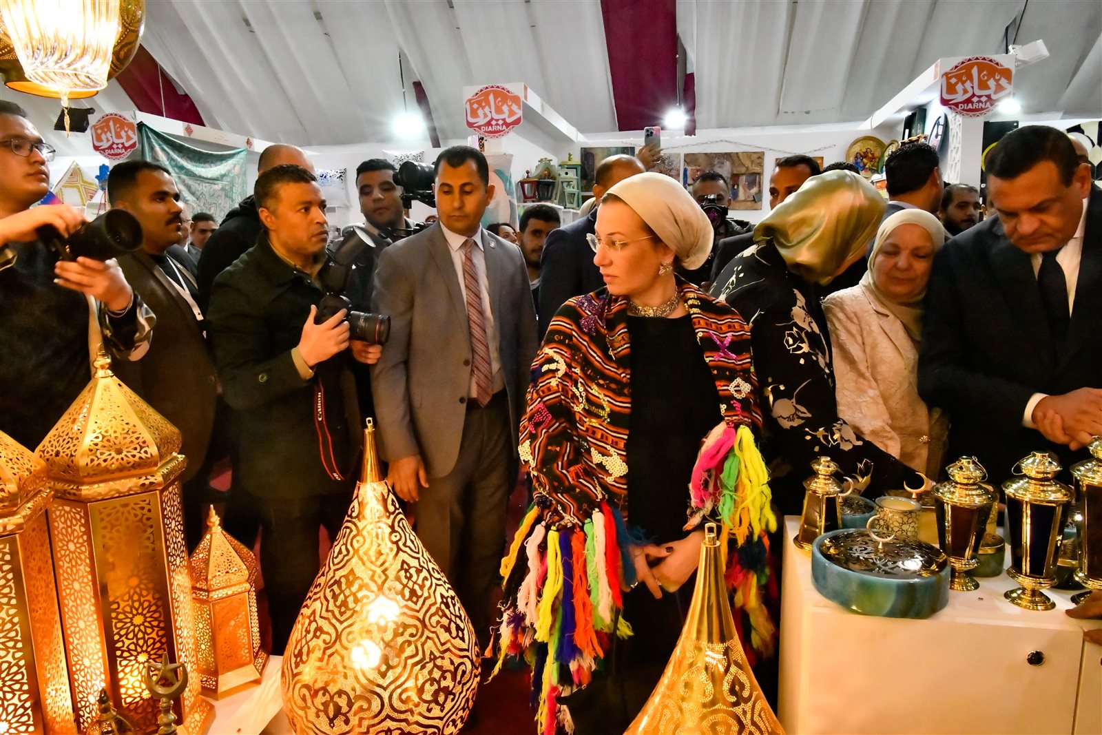 وقد تفقدت الدكتورة ياسمين فؤاد، أروقة المعرض وحرصت على التواصل مع العارضين والزائرين، والحديث معهم عن أهمية استخدام مواد من الطبيعة وإعادة التدوير وترشيد الاستهلاك للحد من المخلفات المتولدة والتي تتطلب التخلص الآمن منها، وايضا اهمية صون الموارد الطبيعية، والاستغلال الأمثل لها والاستثمار فيها، بما يضمن حقوق الأجيال القادمة فيها، ويعمل على تنويع مصادر الإنتاج والأنشطة الاقتصادية.