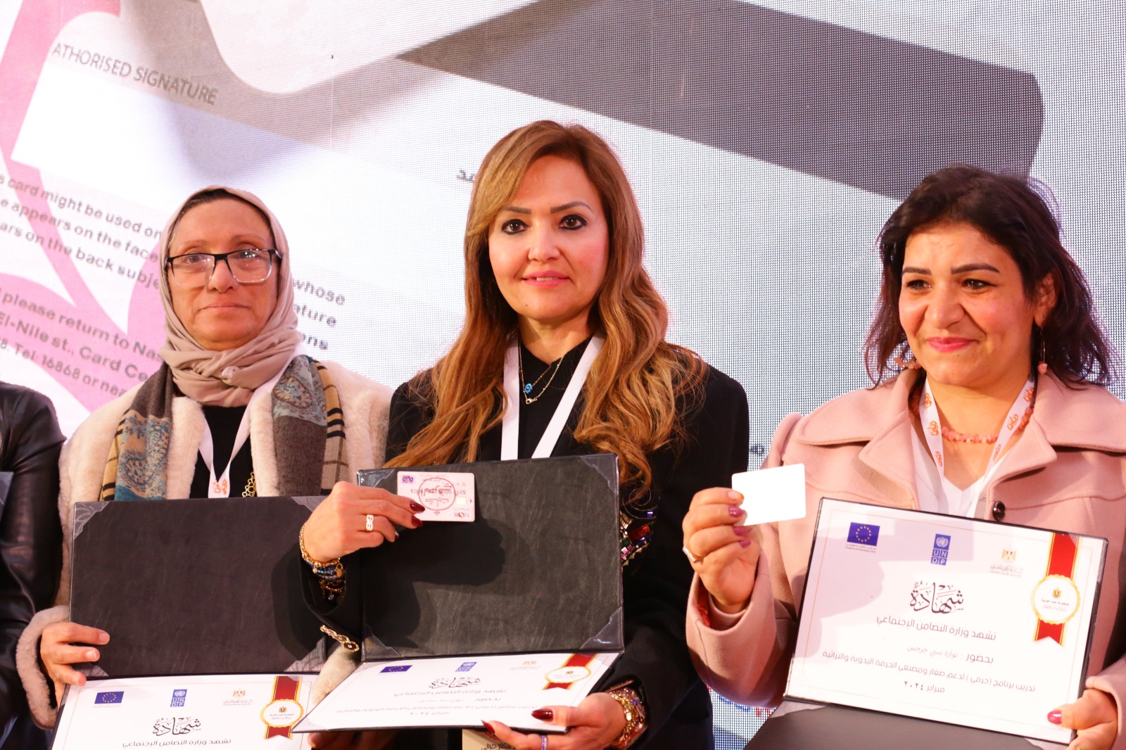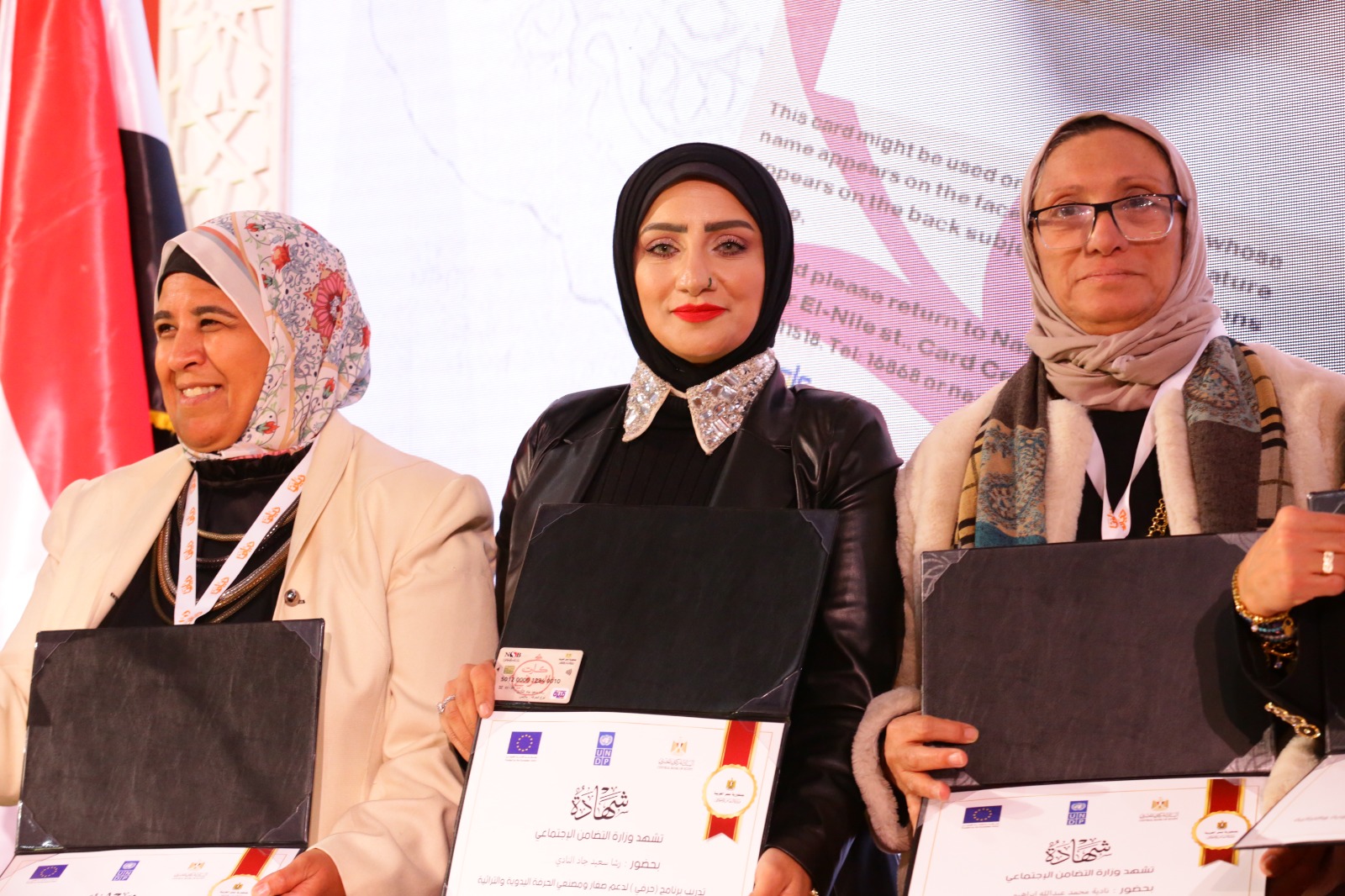 وسلمت القباج عددا من الشهادات لمتدربي برنامج "حرفي" لدعم صغار ومصنعي الحرف اليدوية والتراثية والذي تنفذه وزارة التضامن الاجتماعي بالتعاون مع البنك المركزي المصري.