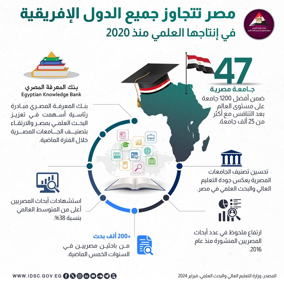 مصر تتجاوز جميع الدول الإفريقية في إنتاجها العلمي منذ 2020 (إنفوجراف)